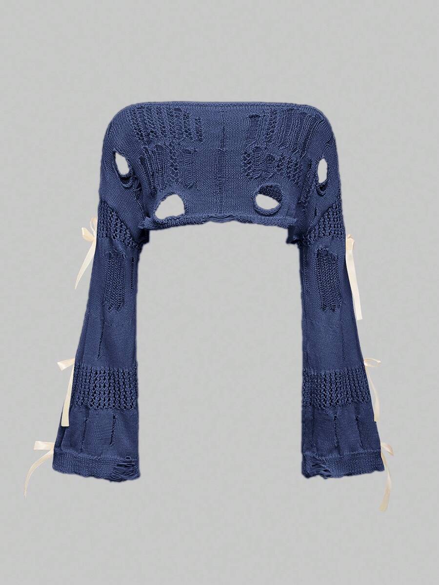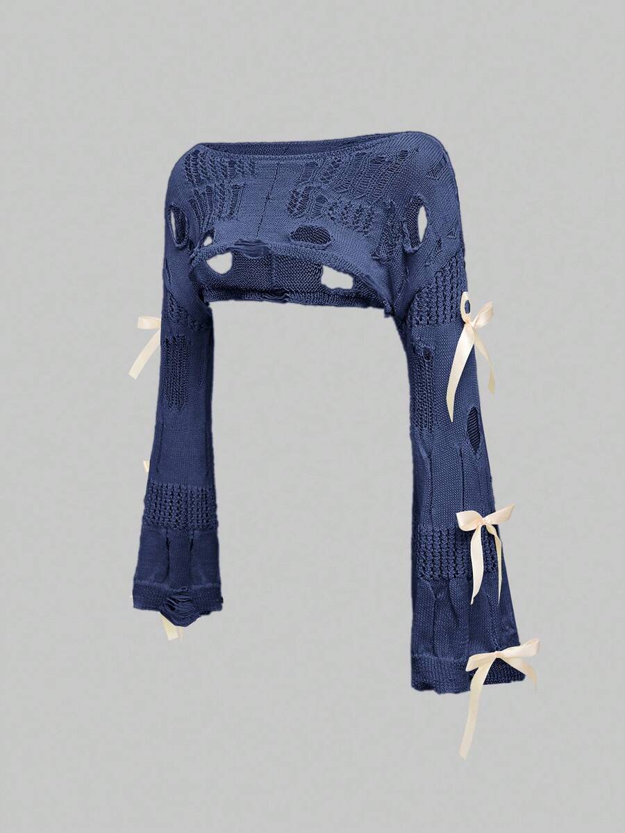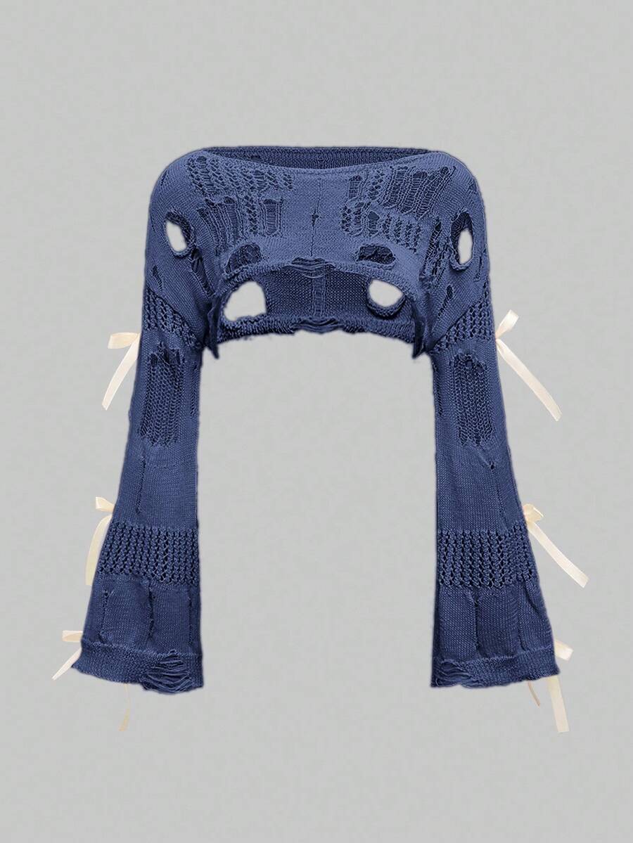 Kawaii Cute & Soft Oversized Hollow Out Bow Shoulder Women Sweater