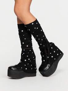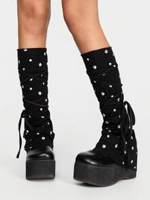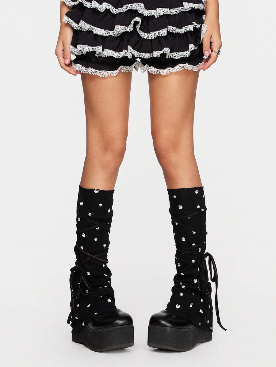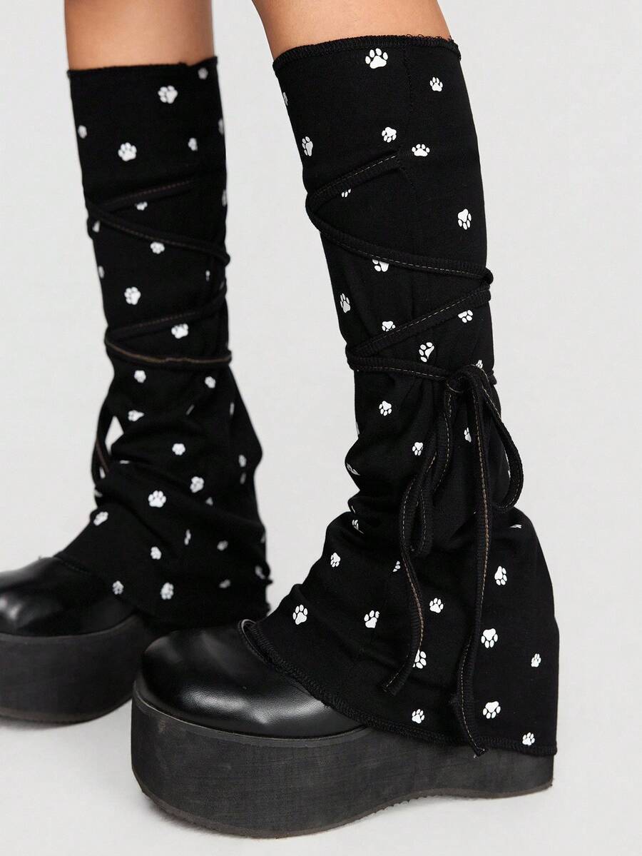 Kawaii Cute, Sweet, Adorable Soft Kitty Paw Print Y2K Bowknot Lace-Up Solid Color Women's School Style Anime Leg Warmers, Suitable For Outfit Decoration, Anime Character Cosplay, JK Accessories