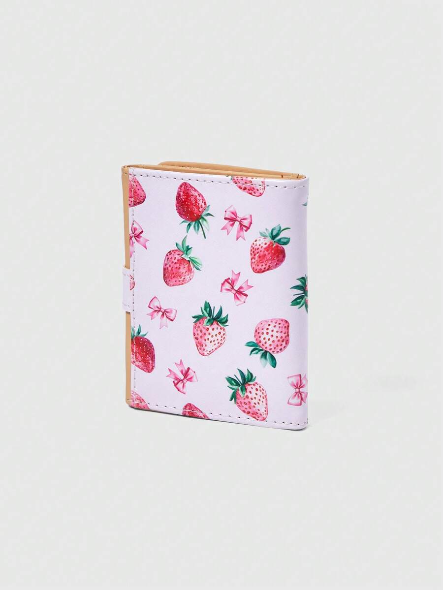 Kawaii Cute Sweet Strawberry Pink Polka Dot Multi-Functional Multi-Card Slot Detachable White PU Leather Short Wallet, Tri-Fold Coin Purse For Girls