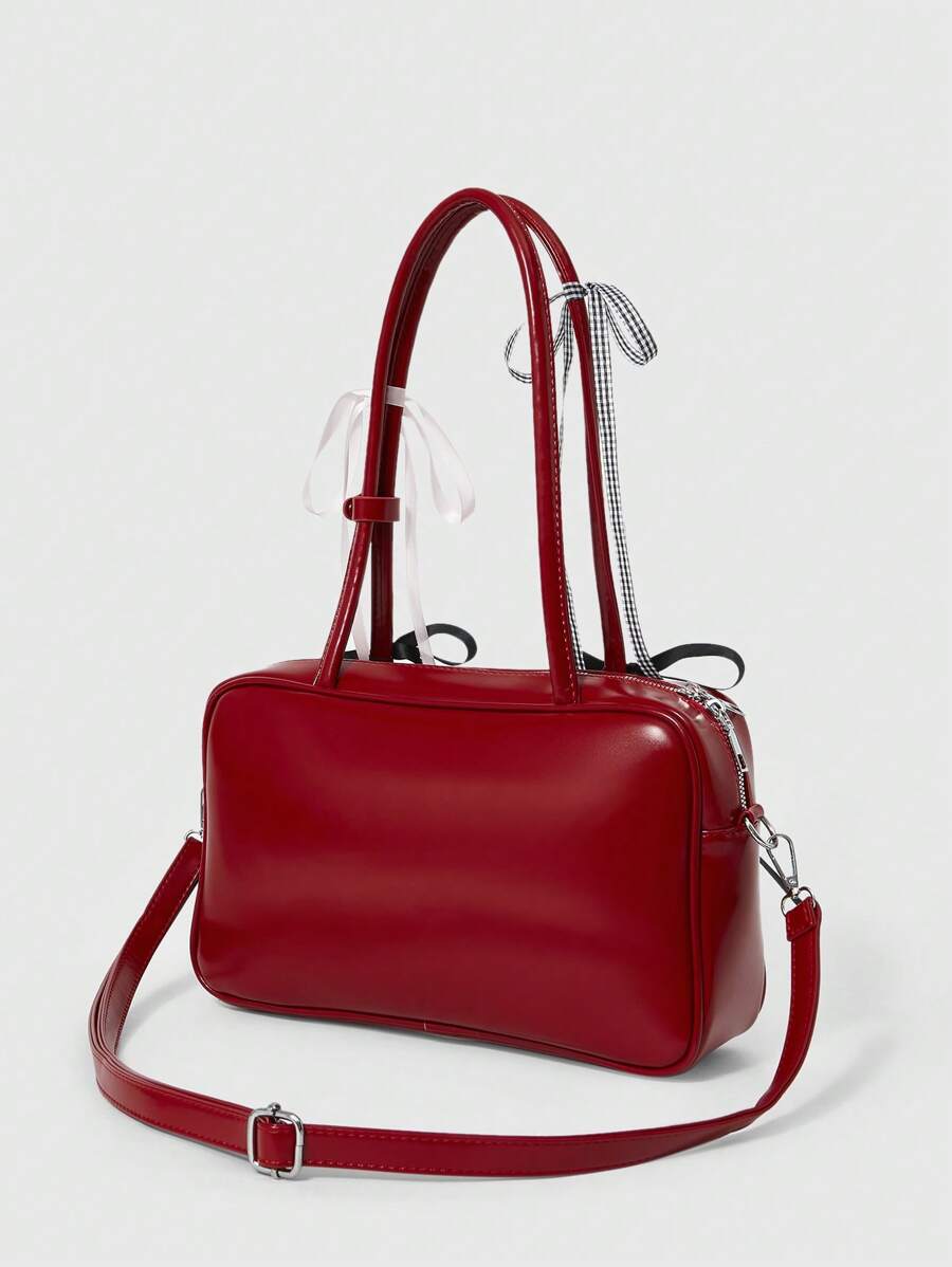 Kawaii Cute Vintage Boston Bag With Bowknot, School Style, Adorable, Customizable Bowknot Decoration Valentines