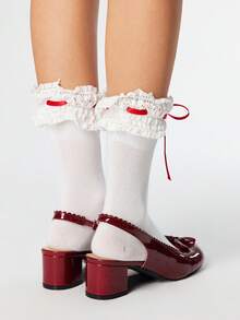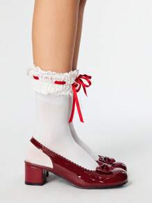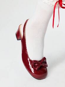 Kawaii Elegant Women's Bow Decor Thick High Heel Pumps, Breathable Design Low Block Heel Round Toe Party Wedding Shoes, Suitable For Women's Valentine's Day