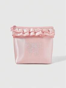 Kawaii Embroidered Bowknot Floral Small Bucket Tissue Box/Makeup Bag/Travel Pad Holder, Gift/Coin Purse, Pink