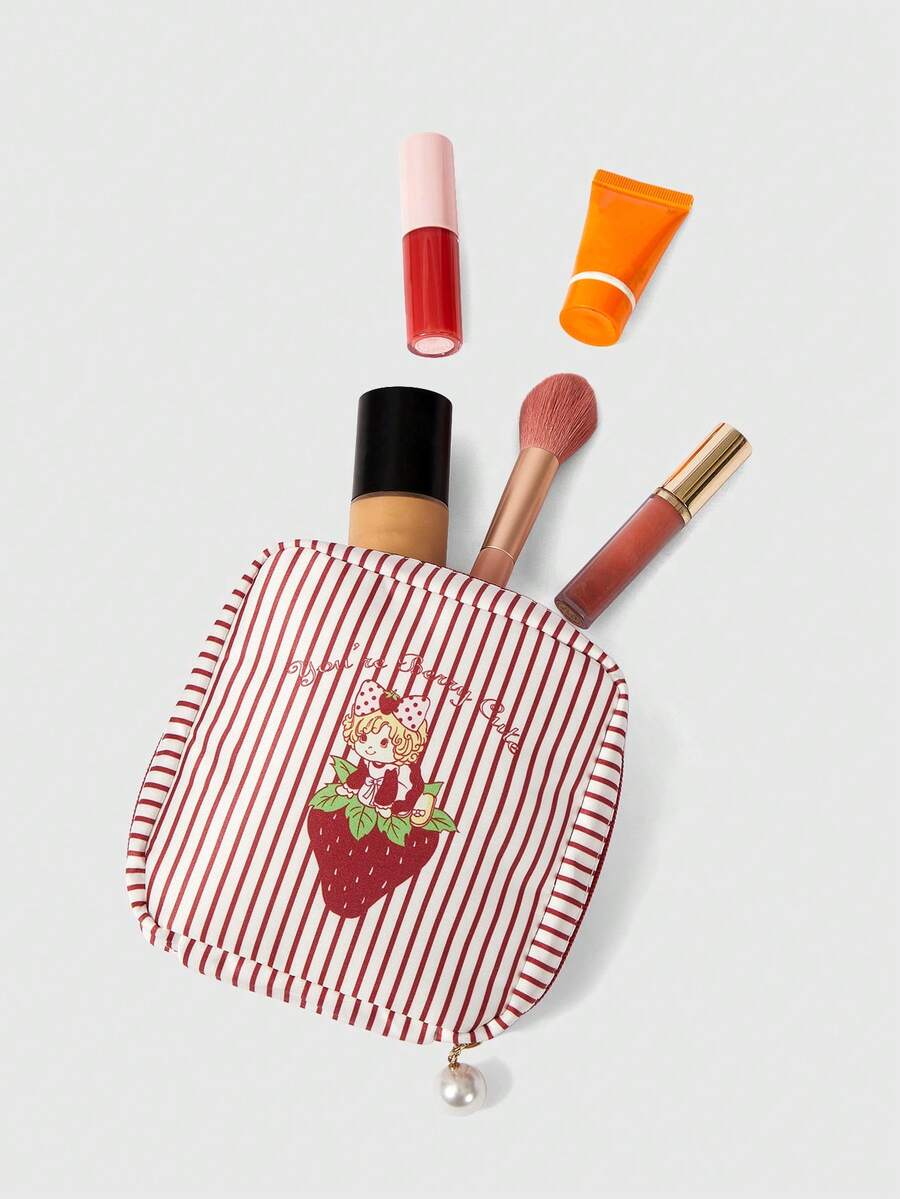 Kawaii Fashionable Cartoon Vintage Girl Thicker And Portable Cosmetic Bag With Large Capacity, Small Square Bag 442464