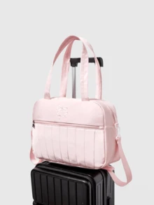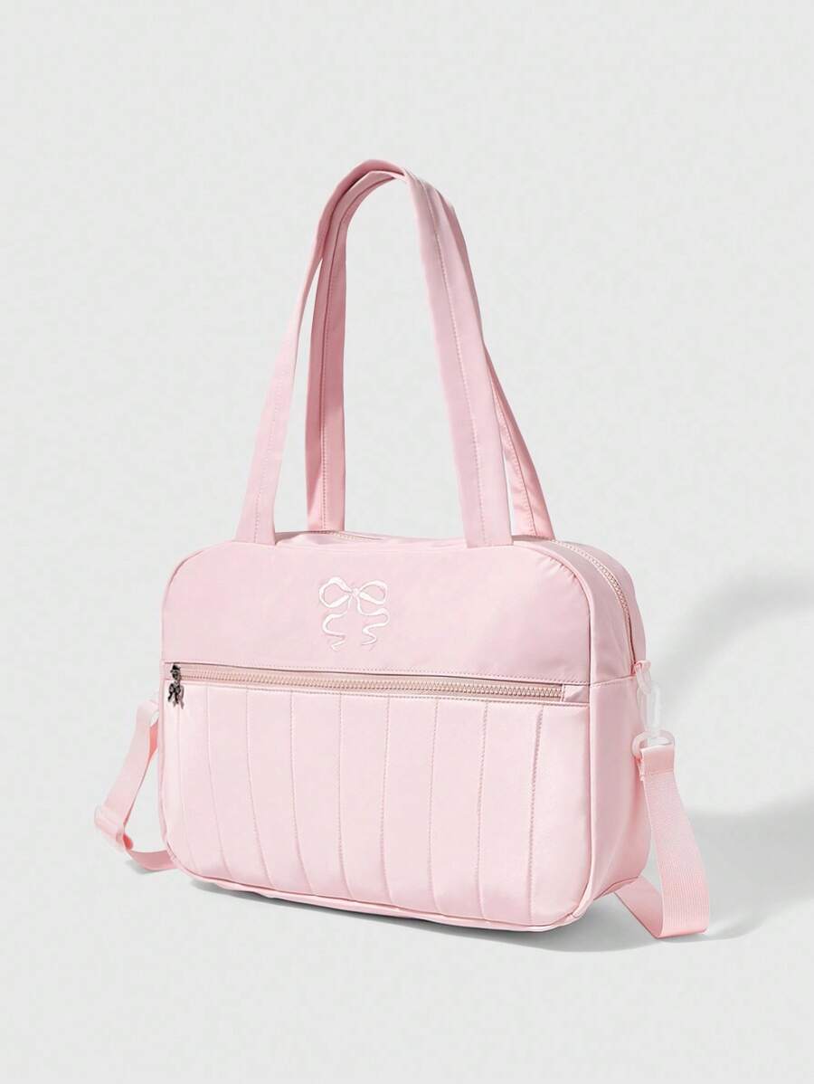 Kawaii Floral Pattern: 84225 Embroidered Bow Travel Bag, Large Capacity Water-Resistant Tote Bag, Travel Luggage Bag, Sports Gym Bag, Suitable For Business Trip, Back To School