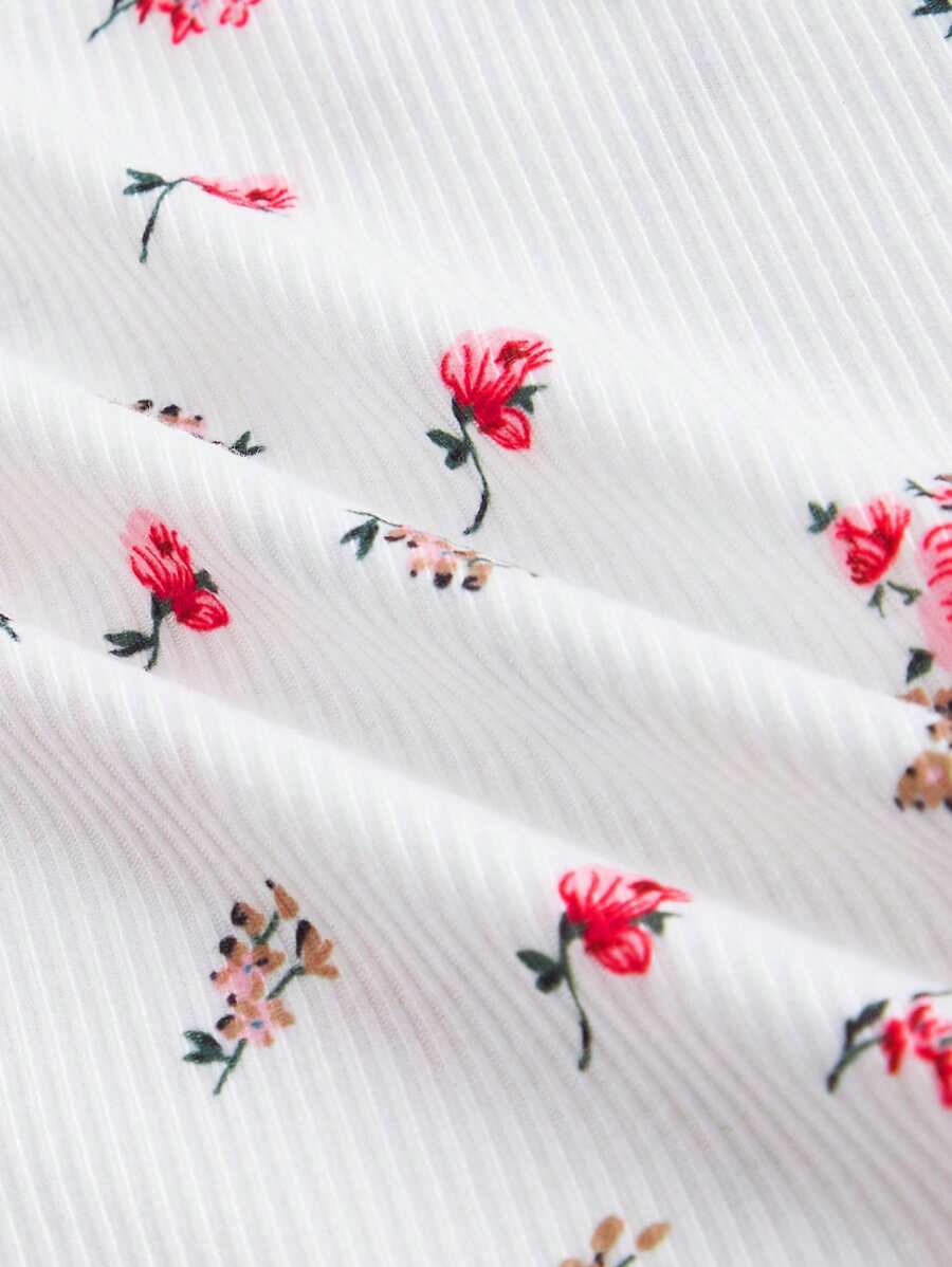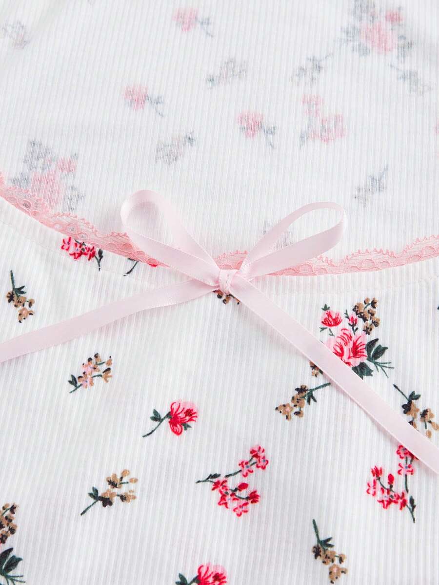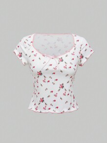 Kawaii Forest Casual Sexy Floral Printed Elastic Bodice Tie Bow Women's T-Shirt, School