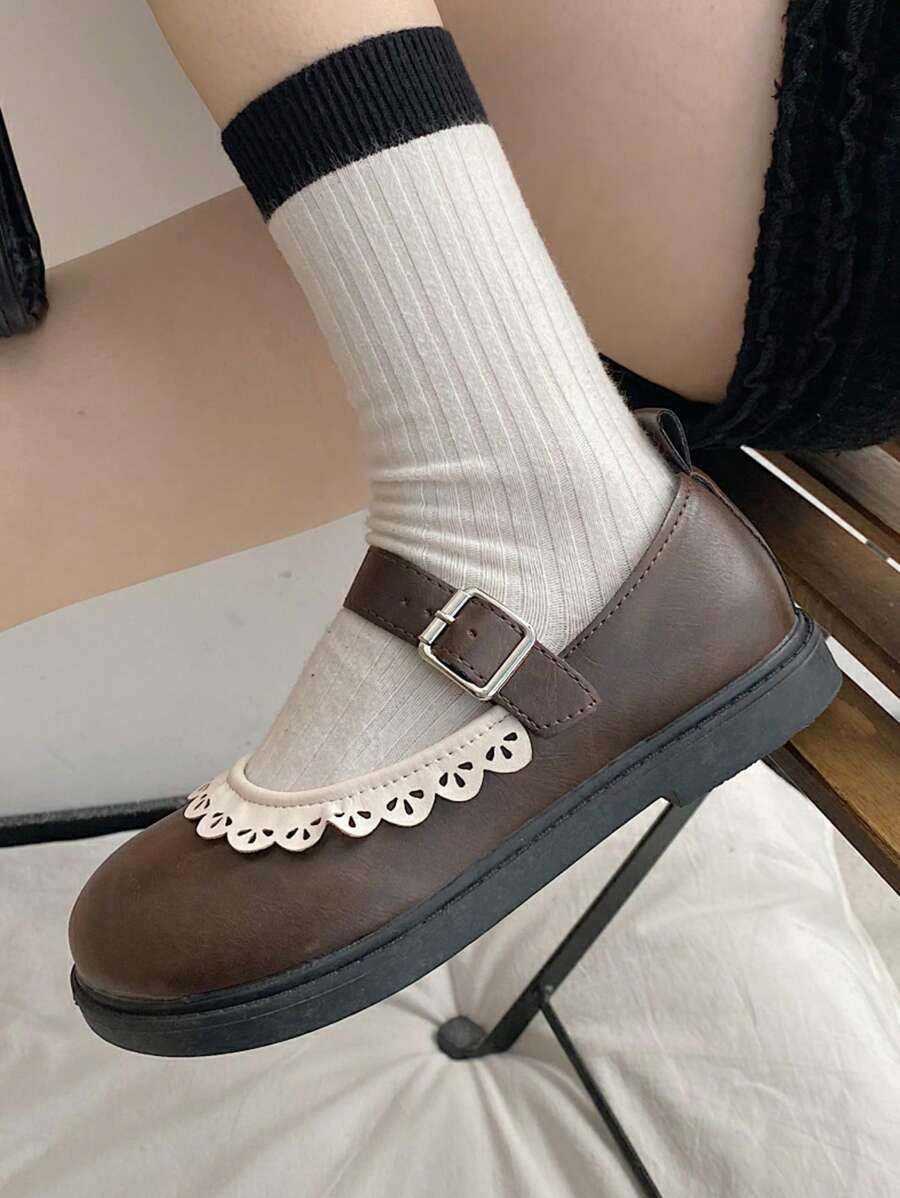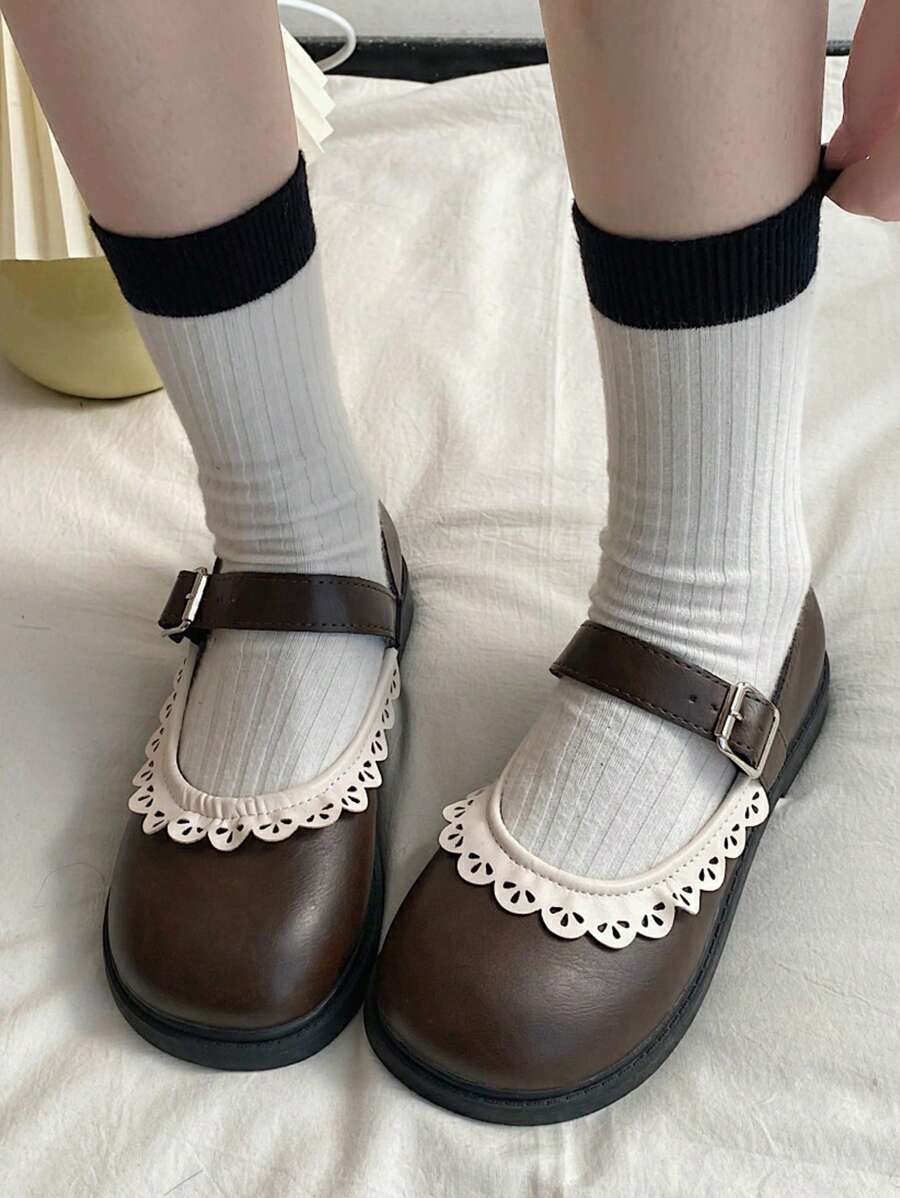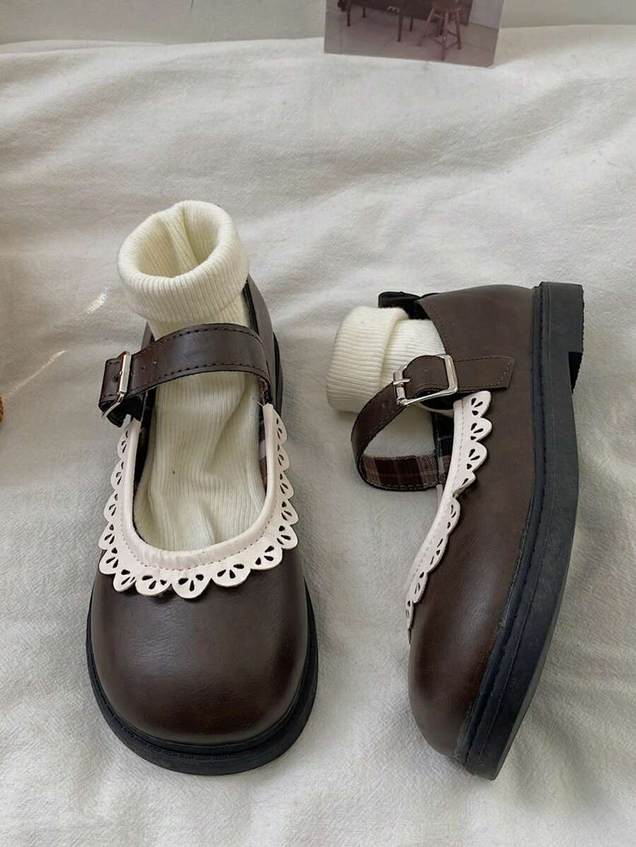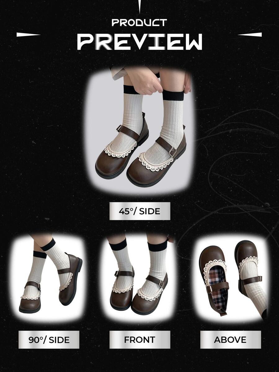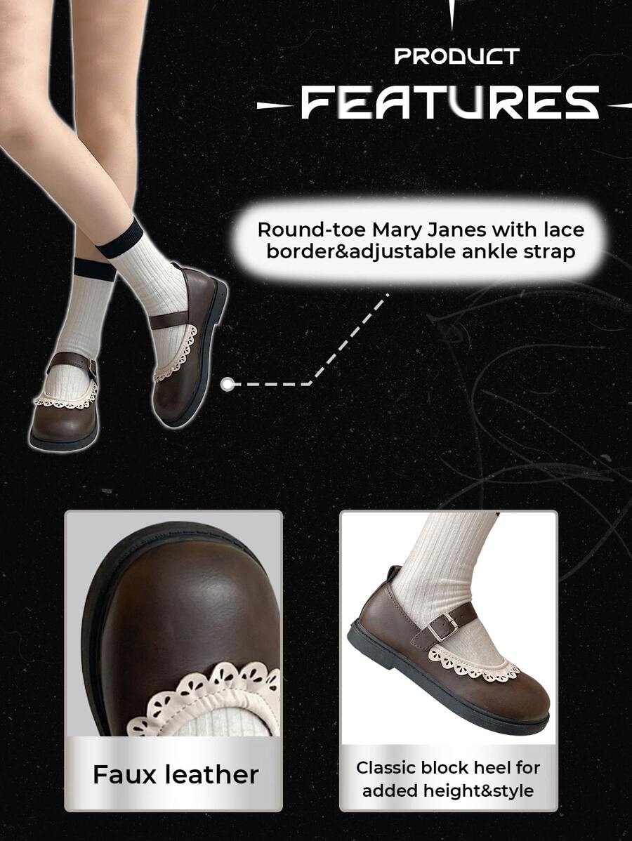 Kawaii French Retro Soft & Cute Lace Low Vamp Round Toe School Style Flat Marin Jane Comfortable Casual Leather Shoes Fall New Year Holiday Valentines Spring Shoes
