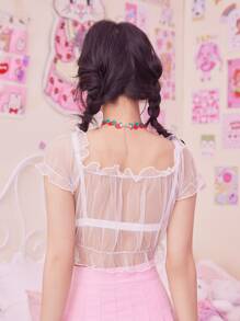 Kawaii Frill Trim Sheer Top Without Bra
