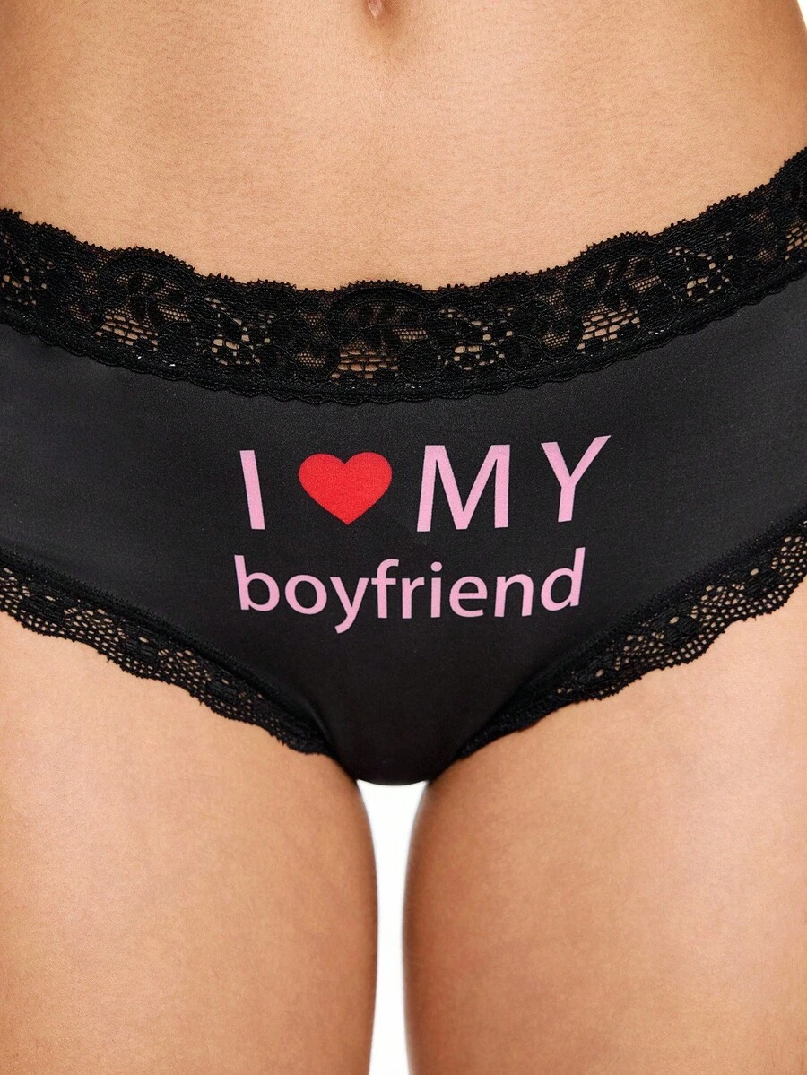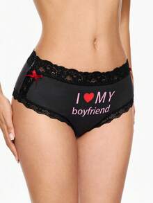 Kawaii Funny Slogan Lace Patchwork Women's Panties