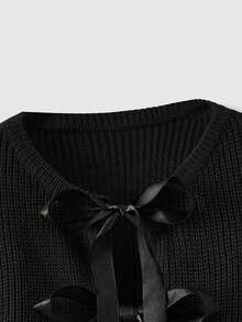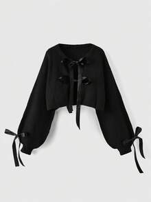 Kawaii Gentle & Cute Bow Decor Ribbon Puff Sleeve Cardigan Sweater For Women