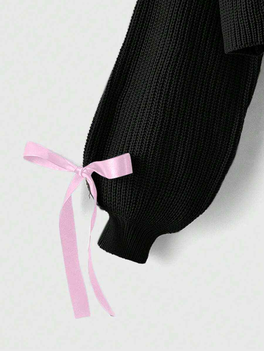 Kawaii Gentle & Lovely Ladylike Style Bow Decoration Lantern Sleeve Cardigan With Open Front