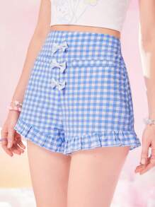 Kawaii Gingham Bow Front Frill Trim Shorts