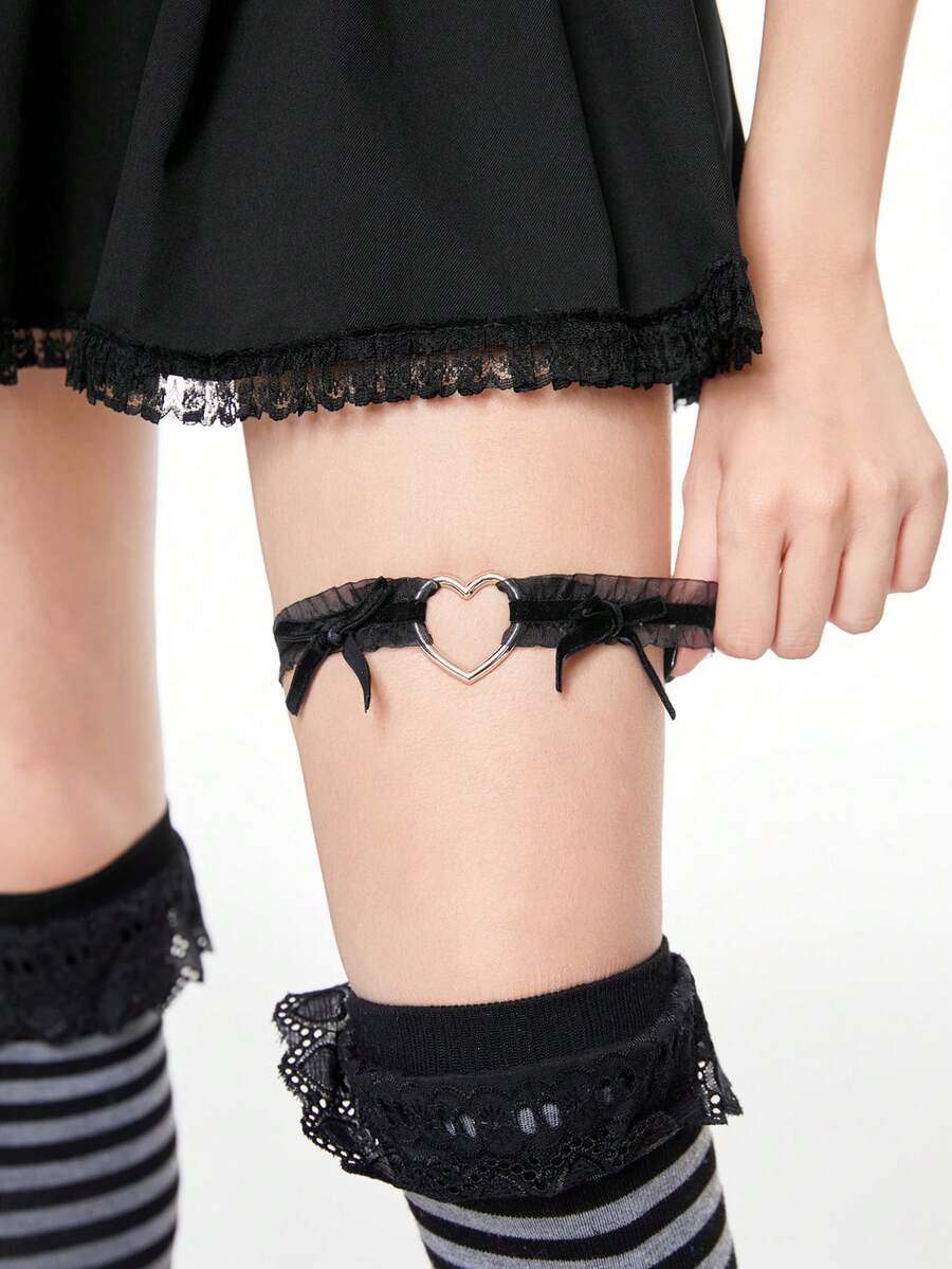 Kawaii Gothic Dark Y2k Heart & Bow Lace Leg Chain For Women