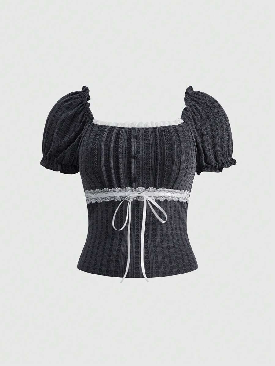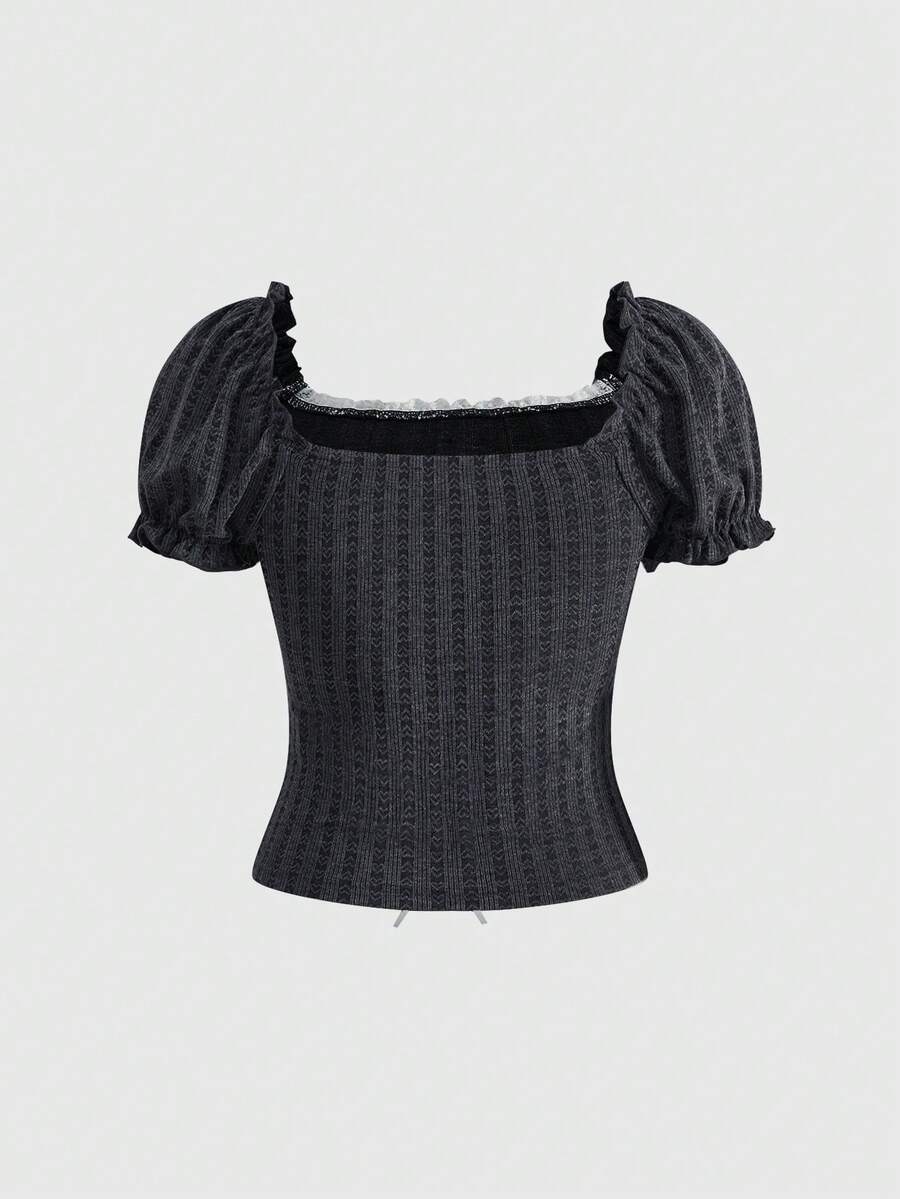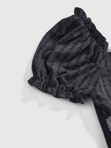 Kawaii Hime Gyaru Cute Doll Sleeve Textured Fabric Women's Slim Fit T-Shirt