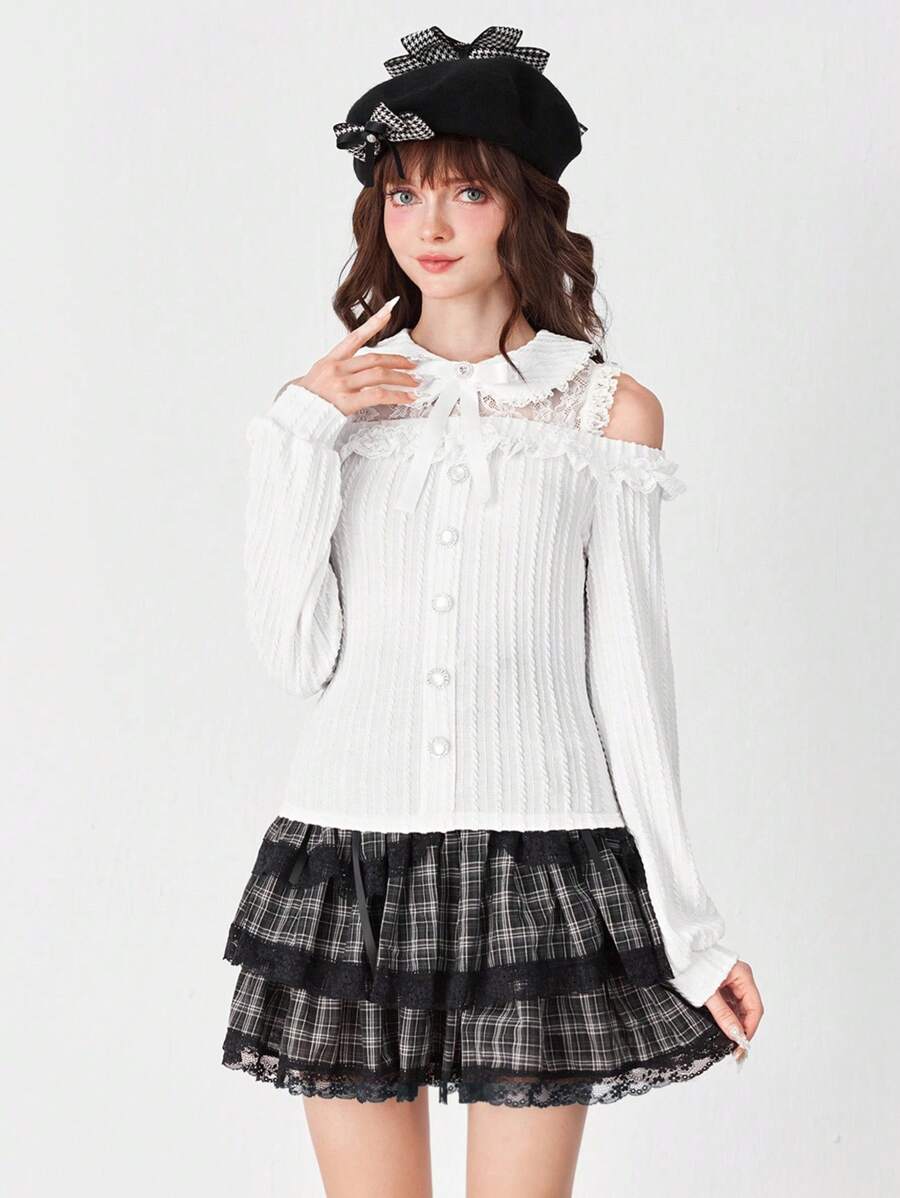 EDITION Kawaii Hime Gyaru Sweet Off Shoulder 2 In 1 Women T-Shirt
