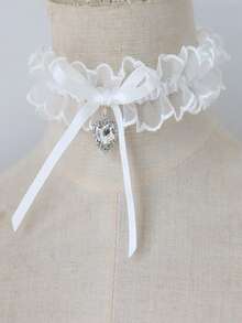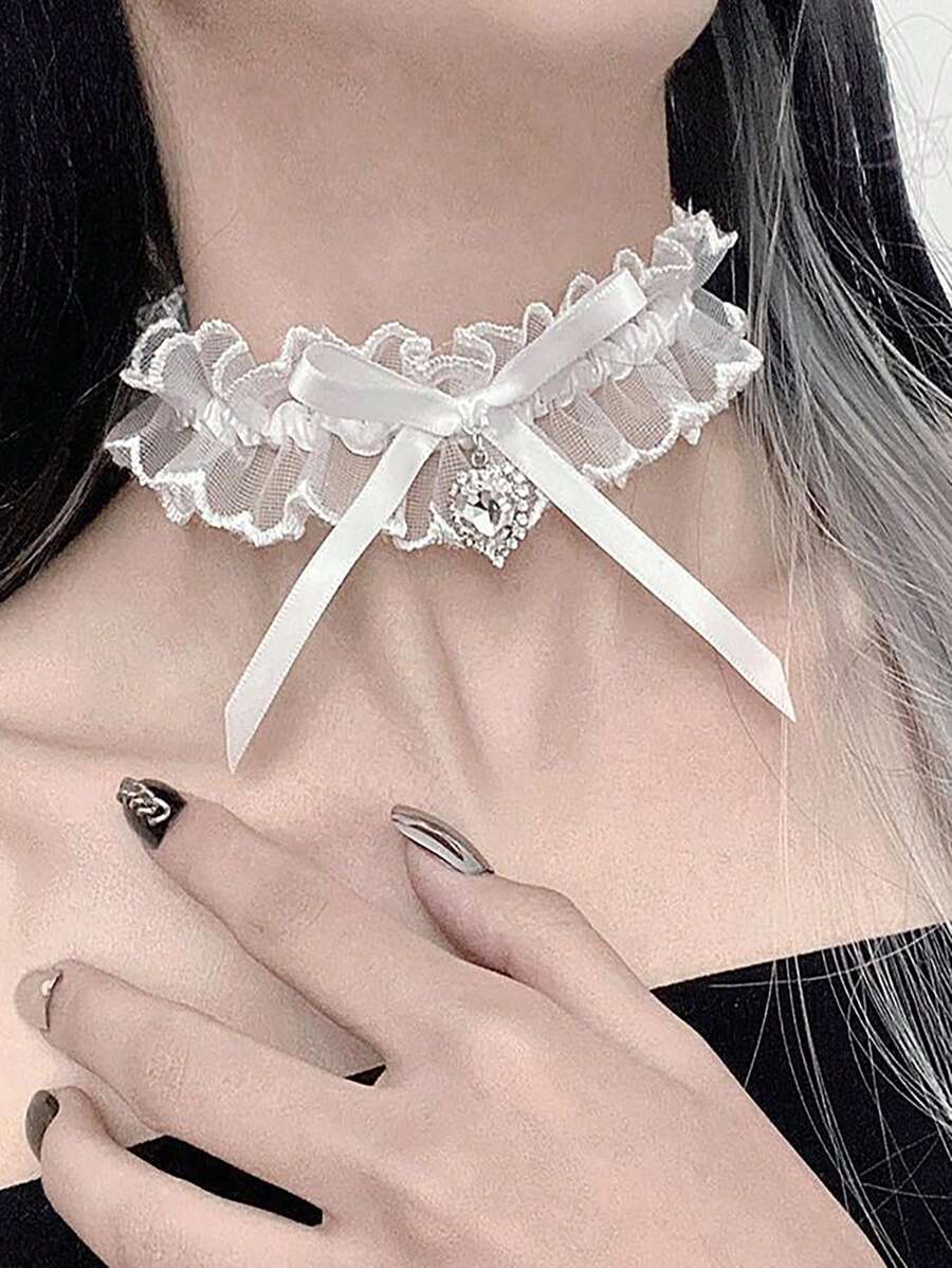 Kawaii Lace Heart Choker Necklace For Party And Gathering Outfits