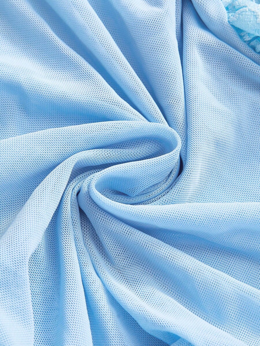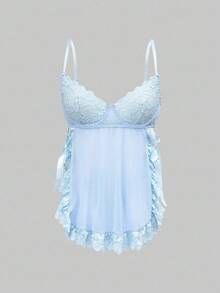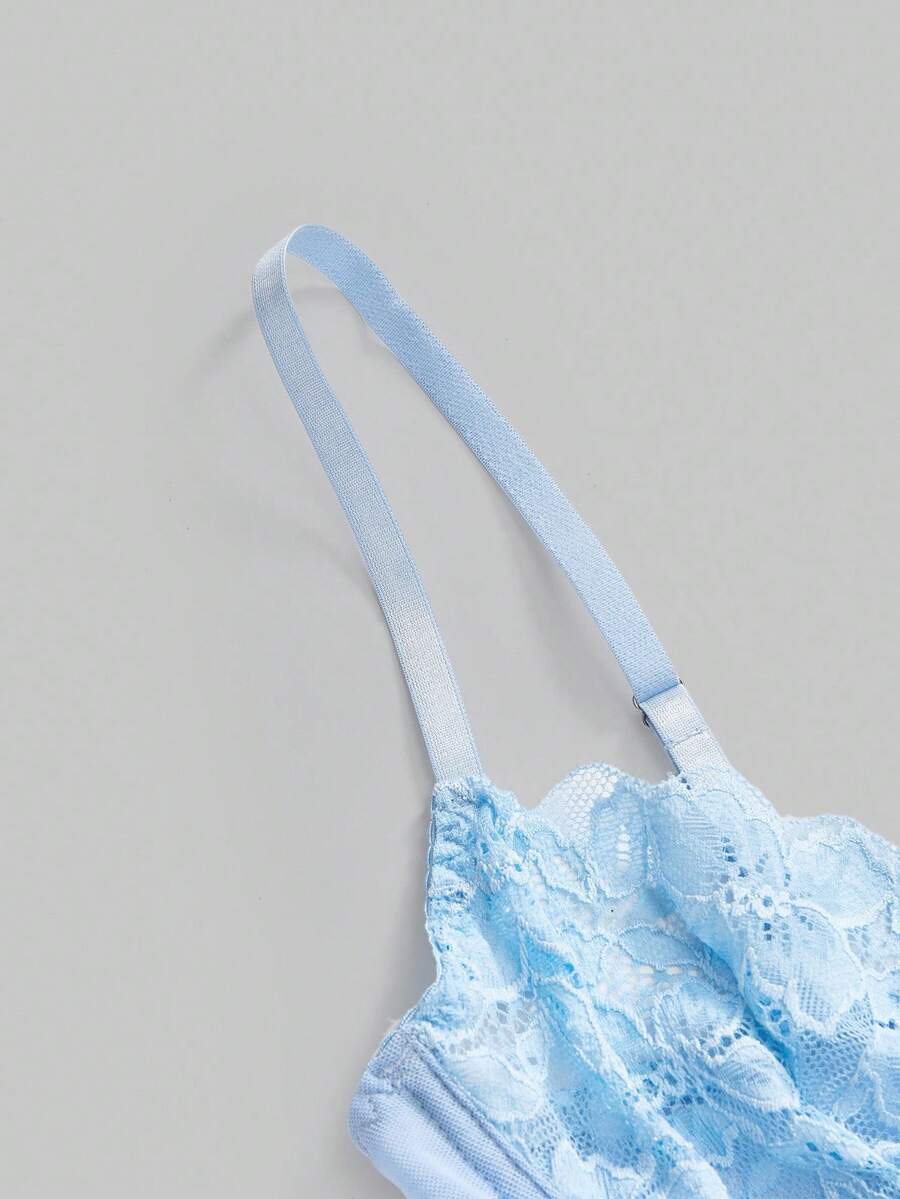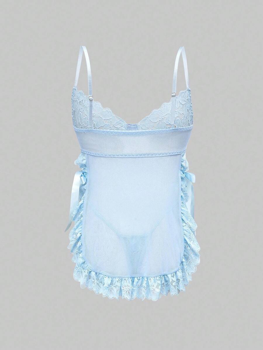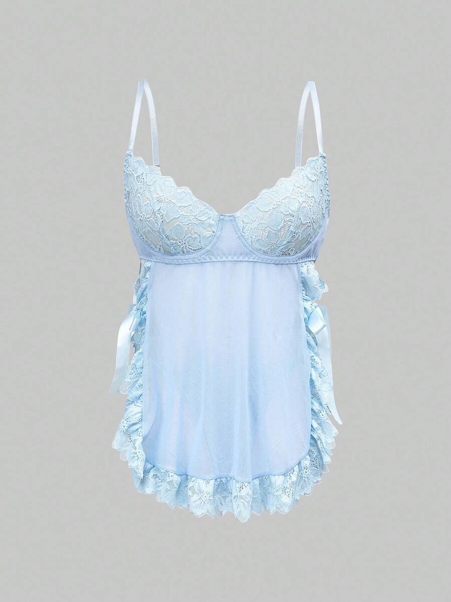 Kawaii Lace Romantic Floral Trim Mesh Underwire Sexy Dress & G-String Lingerie Set