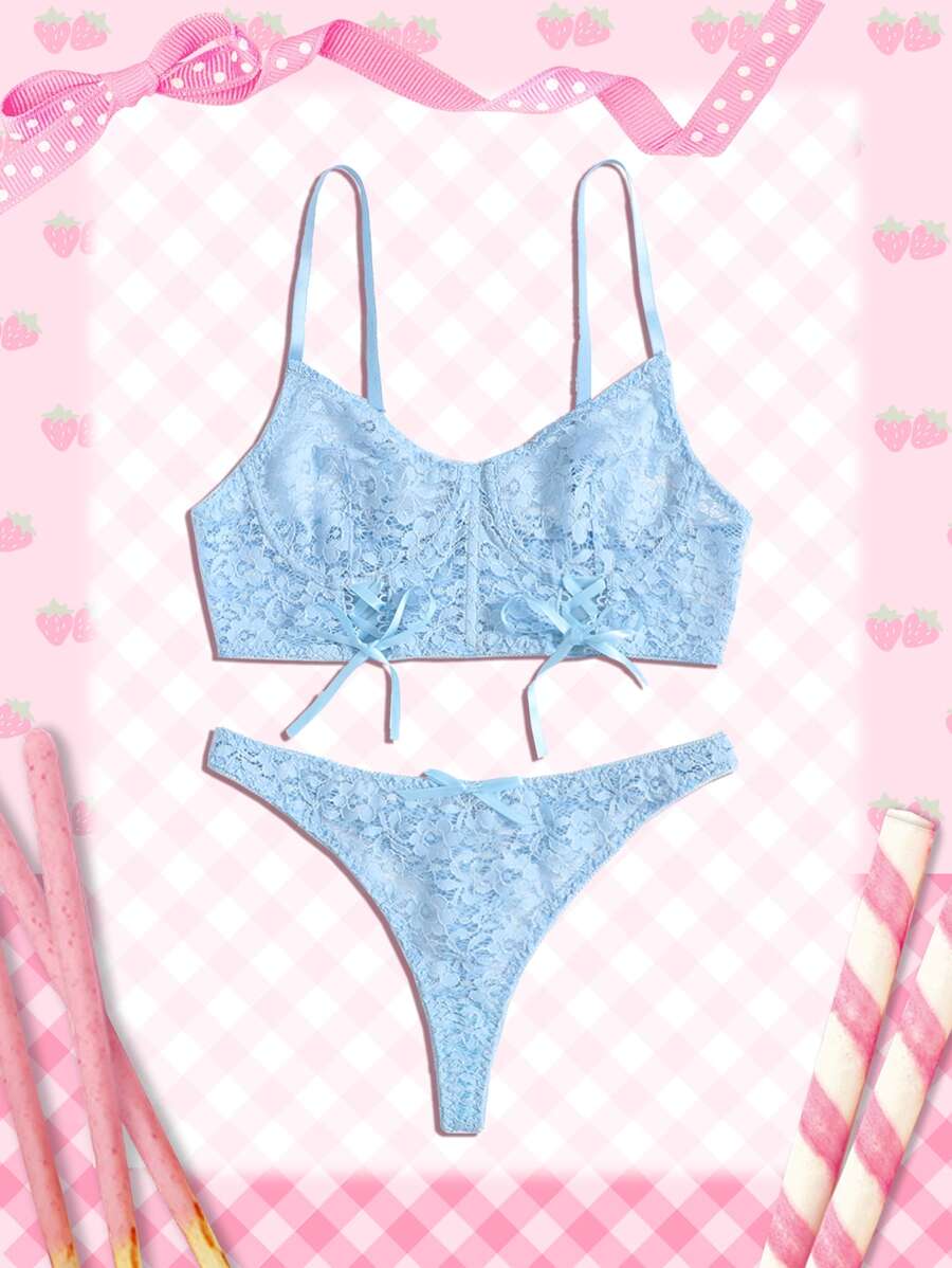 Kawaii Lace Up Contrast Lace Lingerie Set
