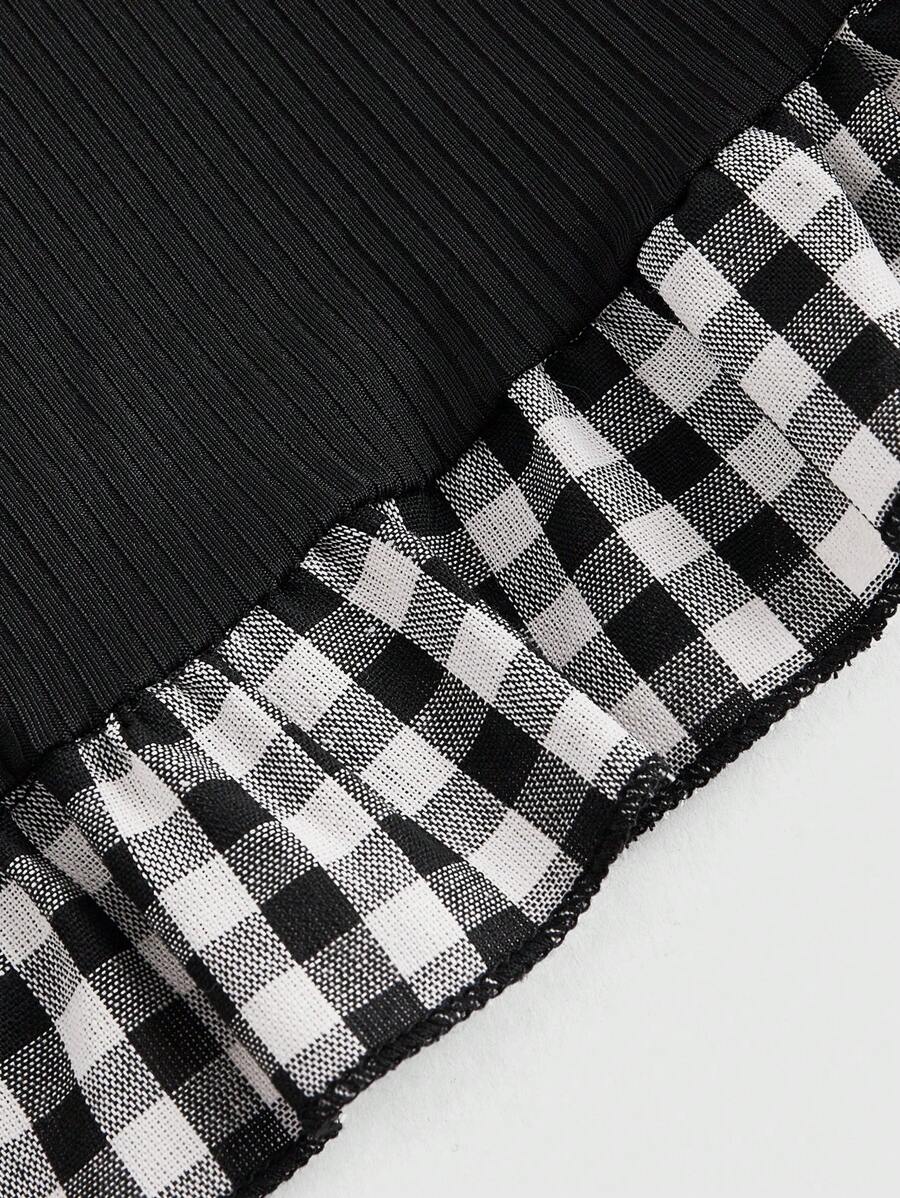 Kawaii Ladies' Himekaji Retro Sweet 2 In 1 Plaid Patchwork Long Sleeve T-Shirt, School