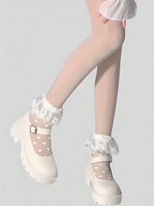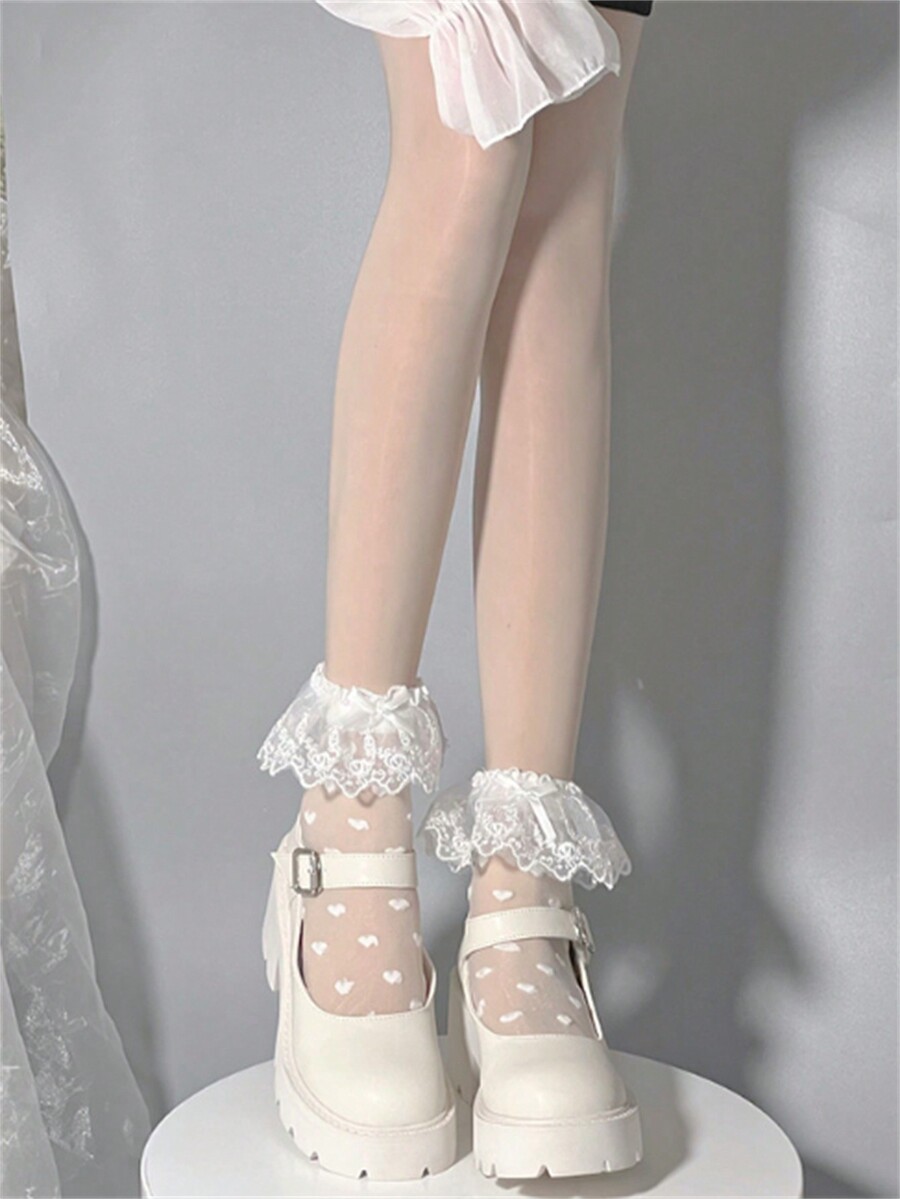 Kawaii Ladies' Lace Daily Heart Print White Socks