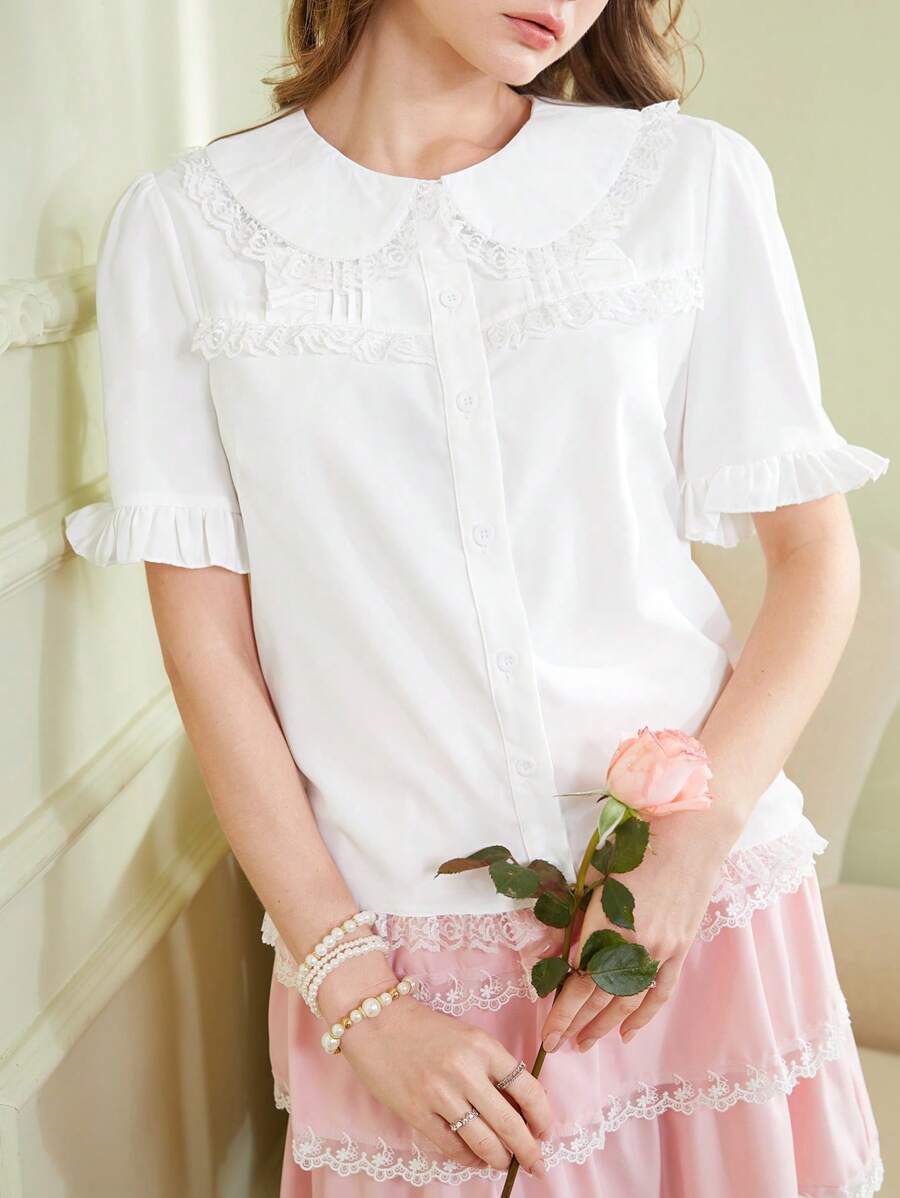 Kawaii Lovely White Lace Slim-Fit Sweet Women'S Shirt
