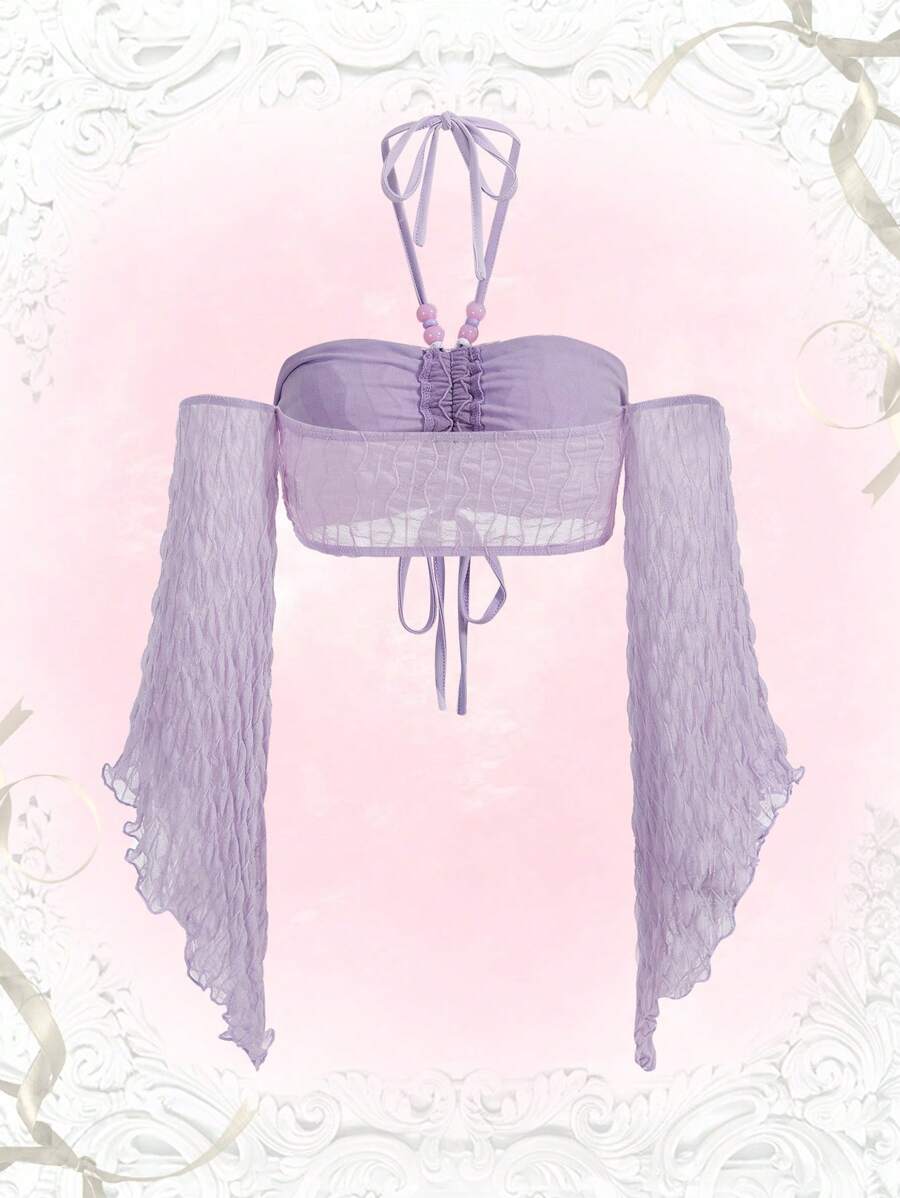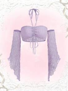 Kawaii Mermaid Solid Drawstring Front Crop Halter Top