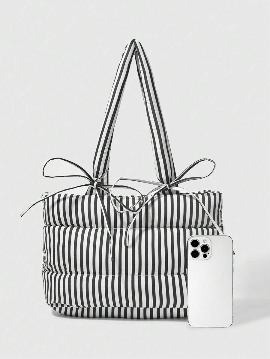 Kawaii New Arrival Autumn/Winter High-End Striped Tote Bag, Niche Design, Commute-Friendly, Korean Style Women Handbag