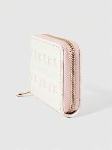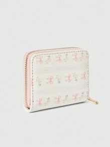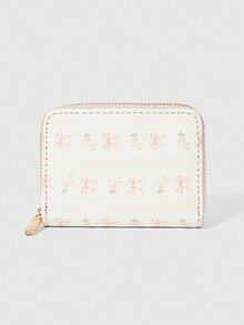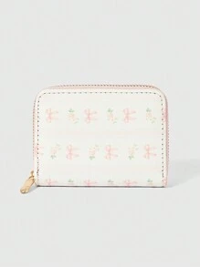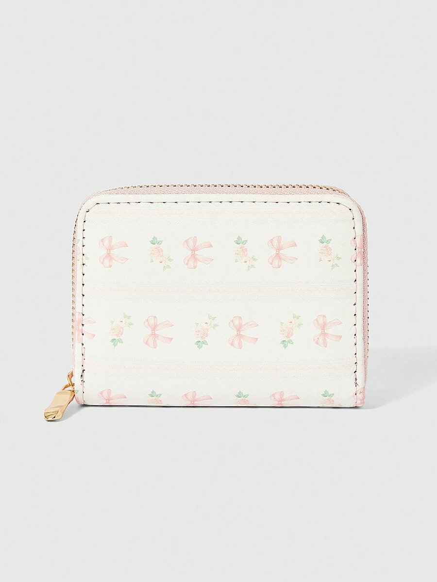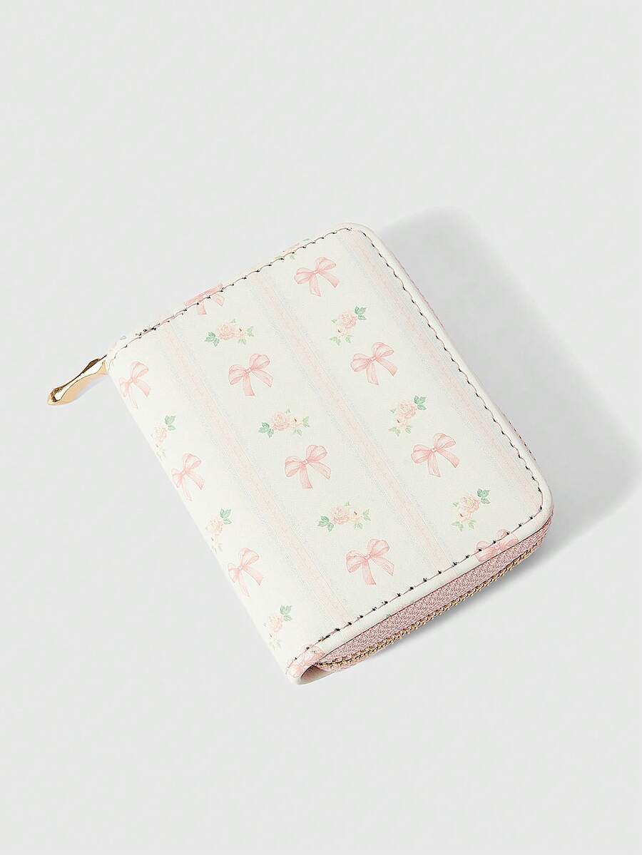 Kawaii Pink Bow Plaid Short Wallet, Multifunctional Card Holder