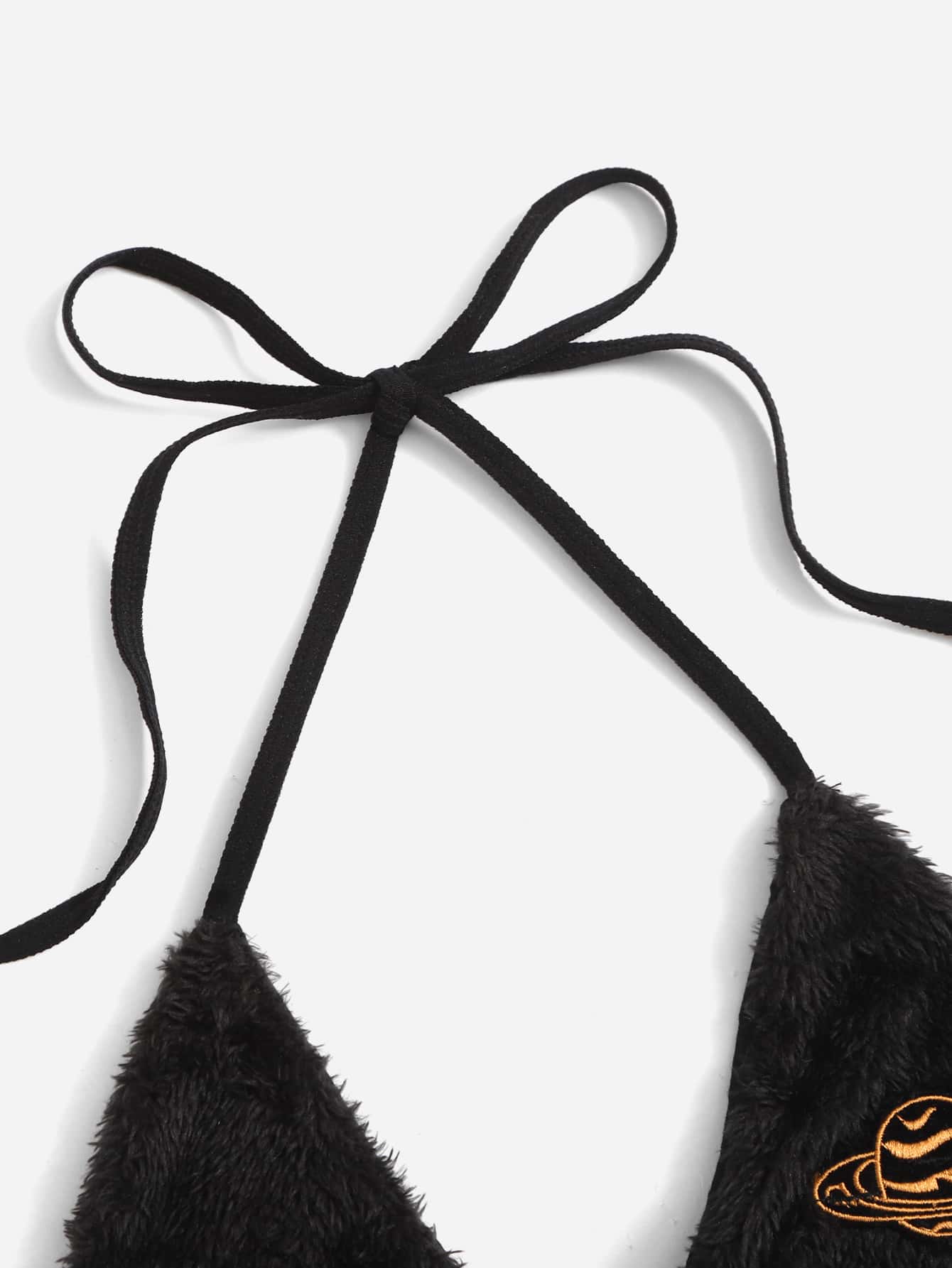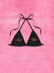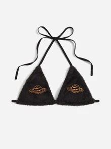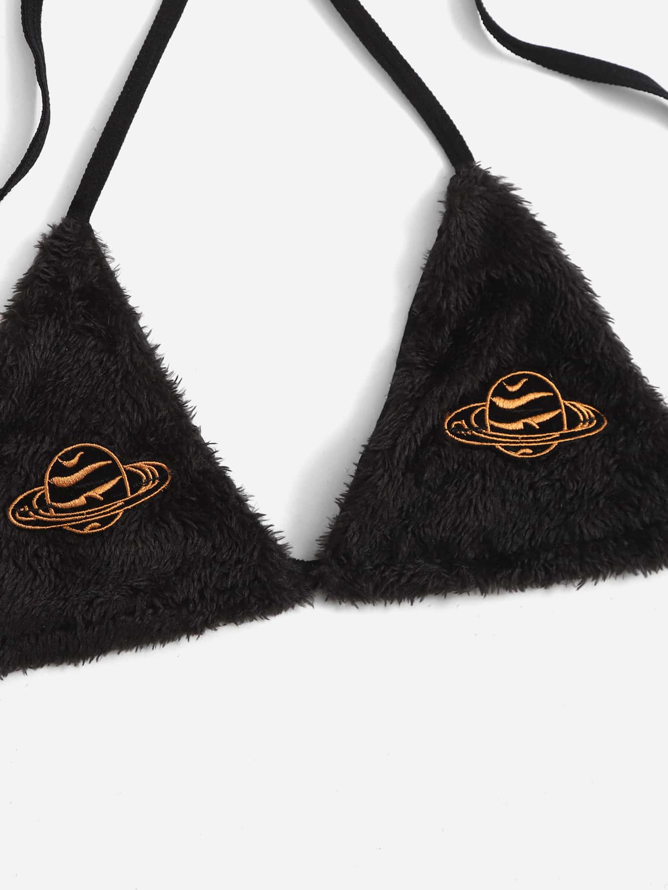 Kawaii Planet Embroidery Fuzzy Lingerie Bra