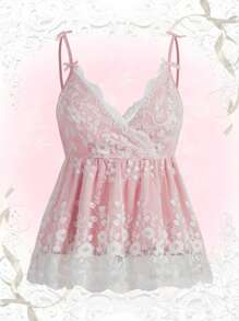 Kawaii Plus Bow Detail Lace Babydoll Cami Top, School