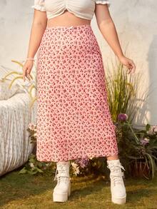 Kawaii Plus Ditsy Floral Print Mesh Overlay Skirt