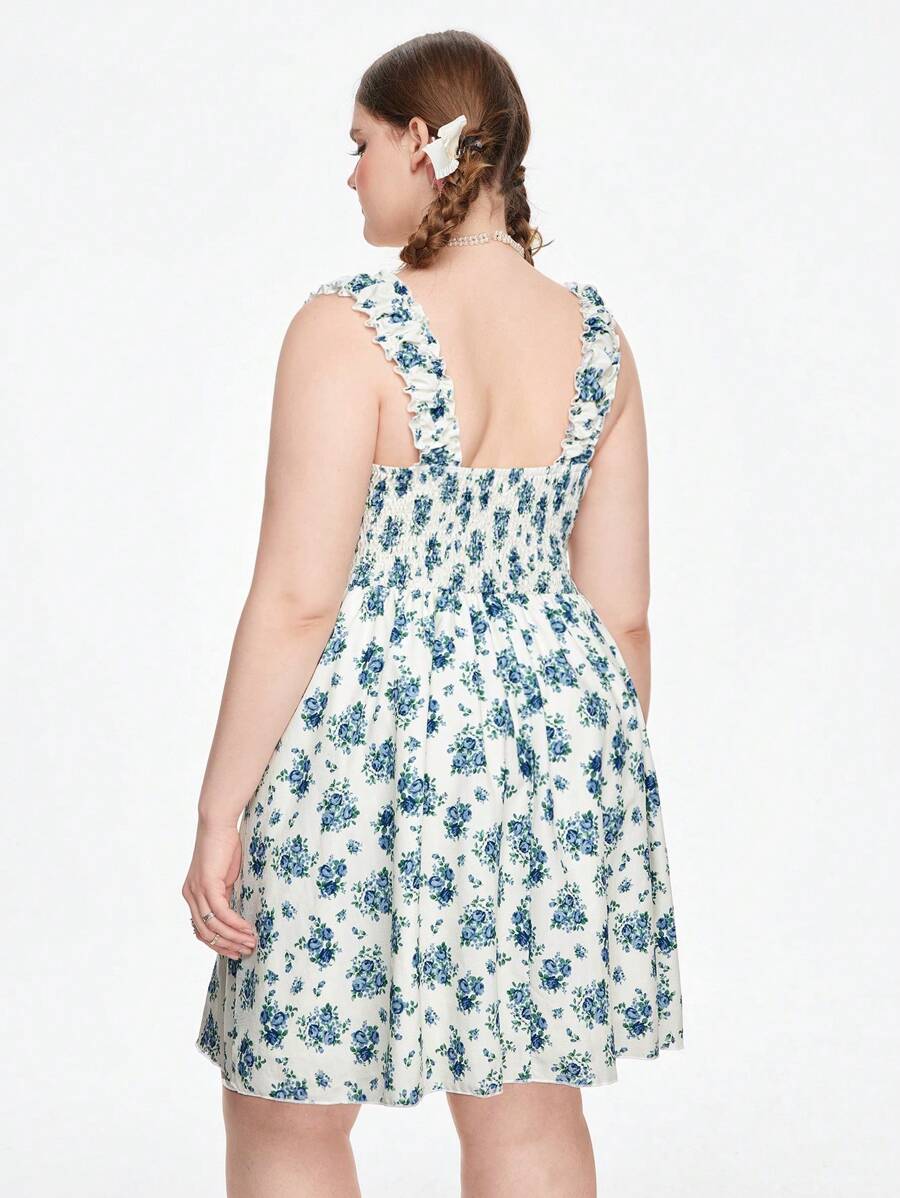 Kawaii Plus Floral Print Cami Dress For Summer Vacation