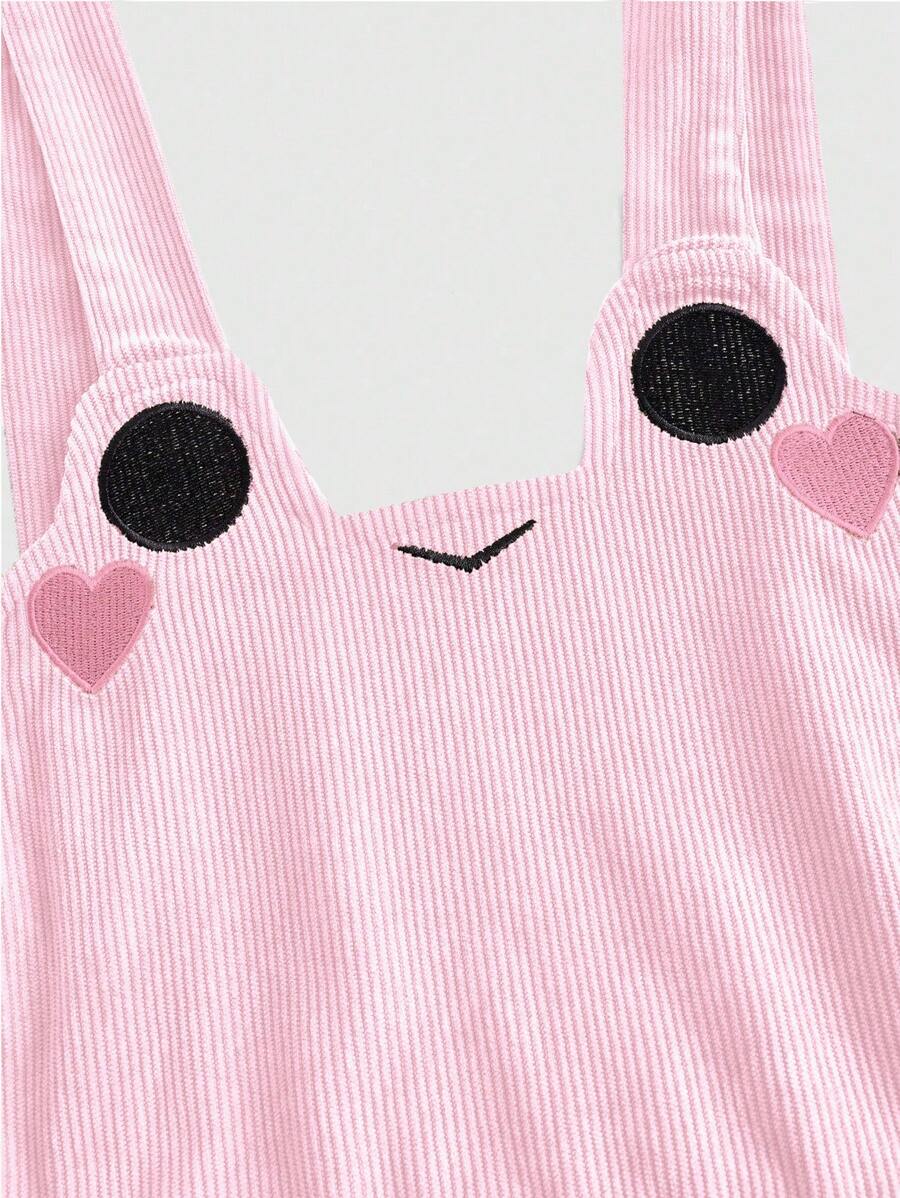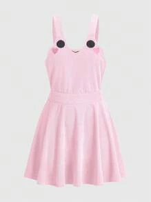 Kawaii Plus Size Adorable Frog Embroidered Pink Camisole Dress