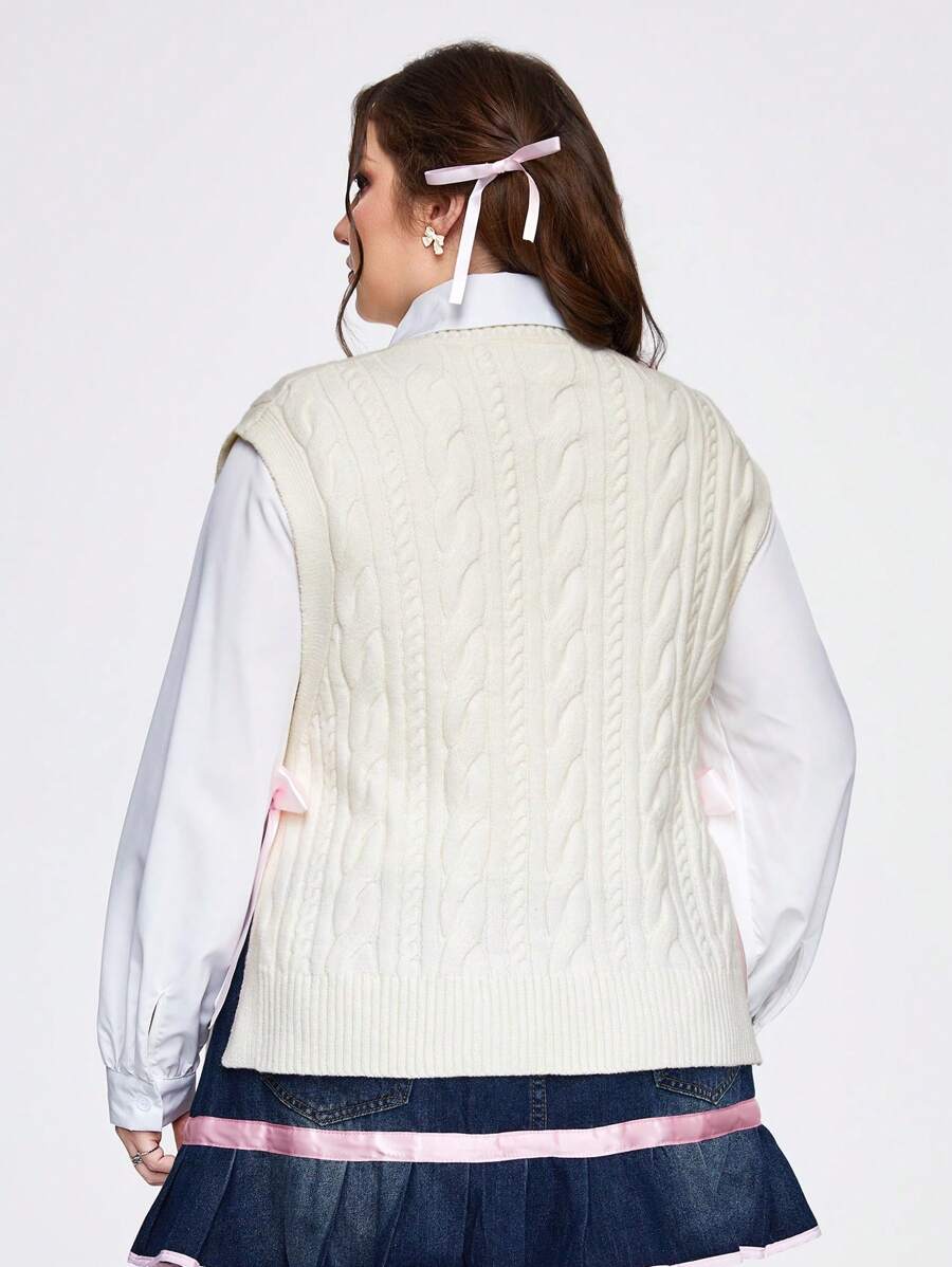 Kawaii Plus Size Casual Bow-Tied Braided Knitted Vest
