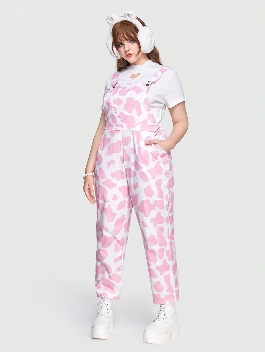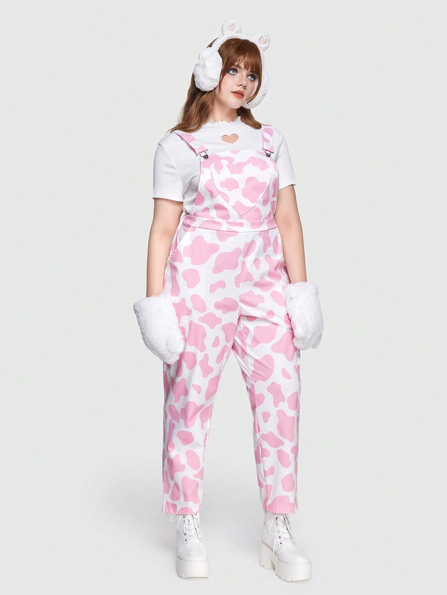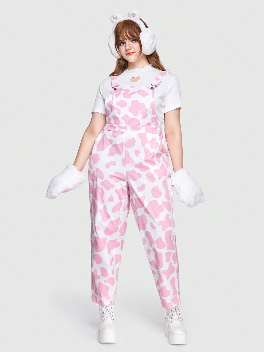 Kawaii Plus Size Cow Print Sleeveless Overalls Jumpsuit
