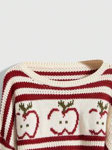 Kawaii Plus Size Cute Apple Pattern Cropped Loose Knit Sweater