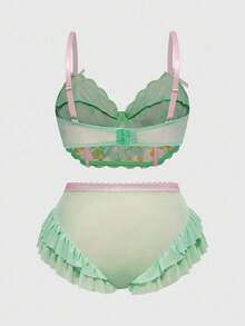 Kawaii Plus Size Cute Embroidered Contrast Color Underwire Lingerie