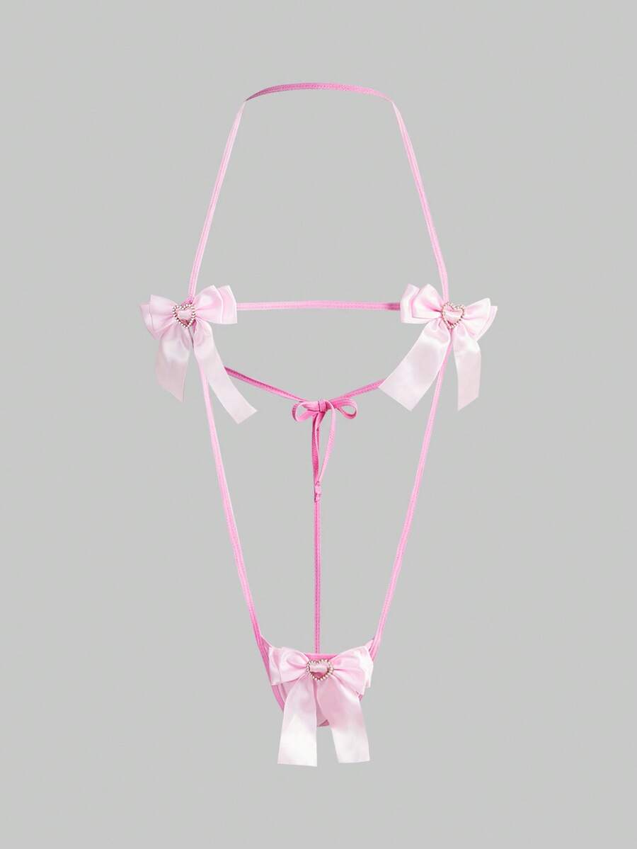 Kawaii Plus Size Cute & Sexy Heart Rhinestone Bow Bodysuit