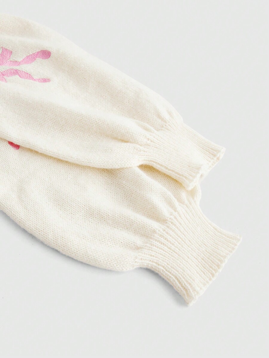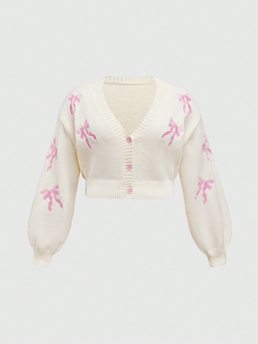 Kawaii Plus Size Himekaji Cute Bow Embroidery Pattern Cardigan Sweater