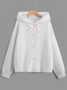 Kawaii Plus Size Hooded Cardigan With Bow Decoration