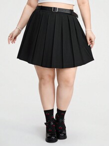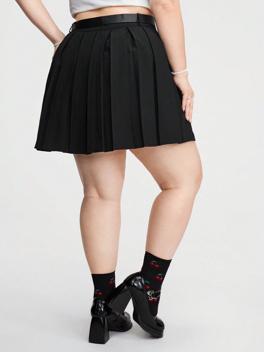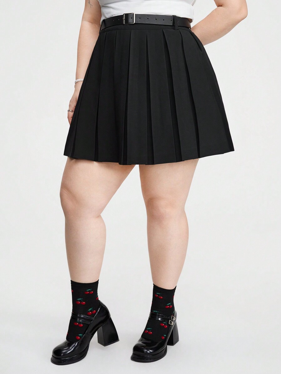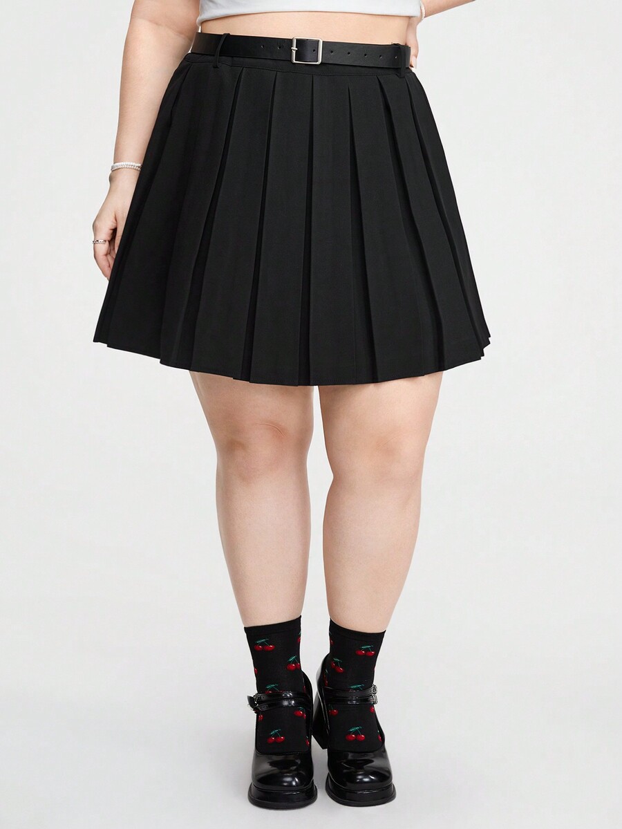 Kawaii Plus Size Solid Color Pleated Skirt For Daily Wear