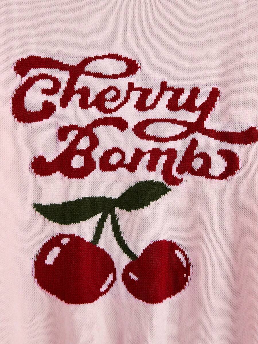 Kawaii Plus Size Women's Letter & Cherry Pattern Sweater Pullover