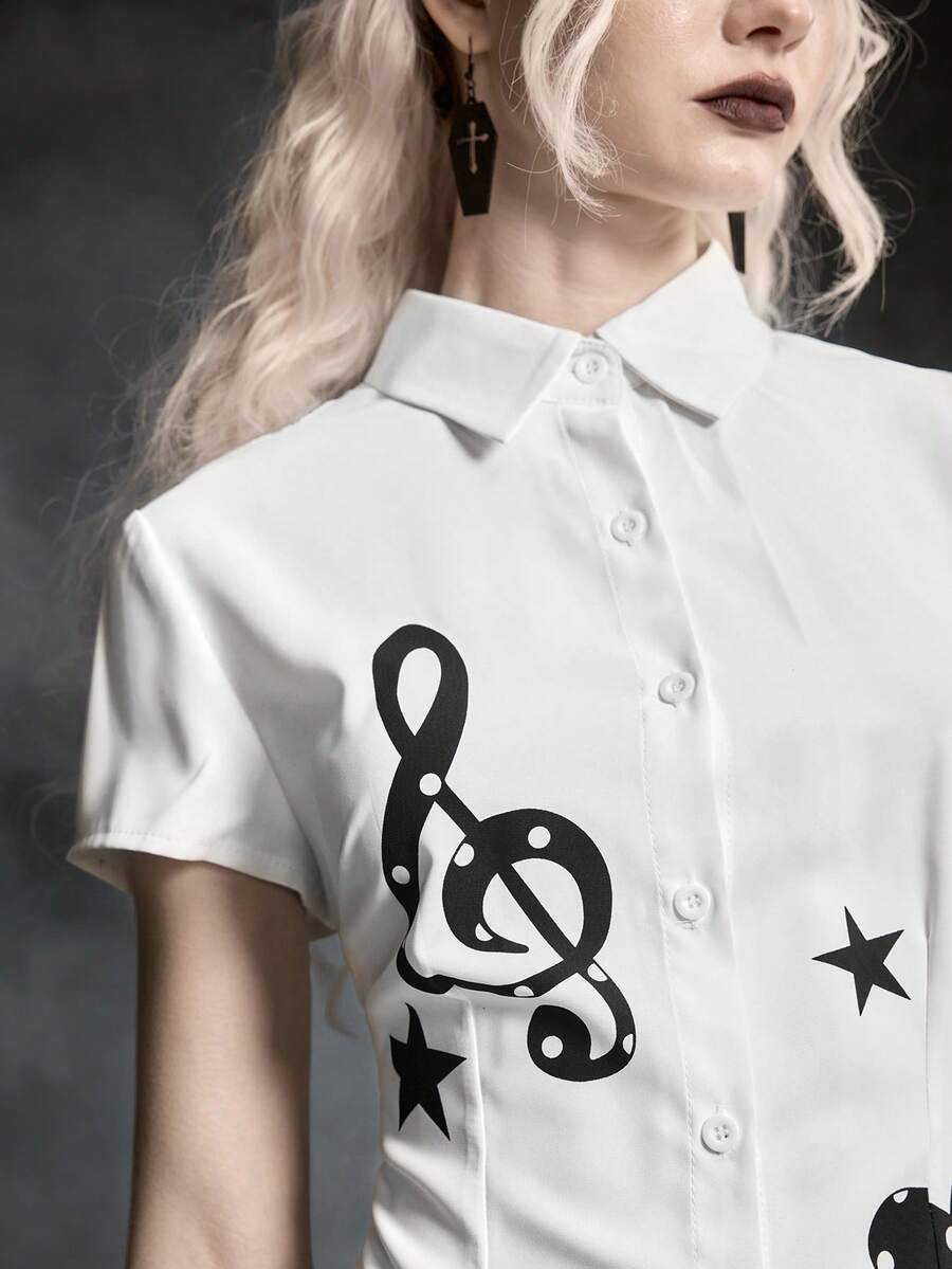 Kawaii Polka Dot & Musical Note Print Fitted Women Blouse