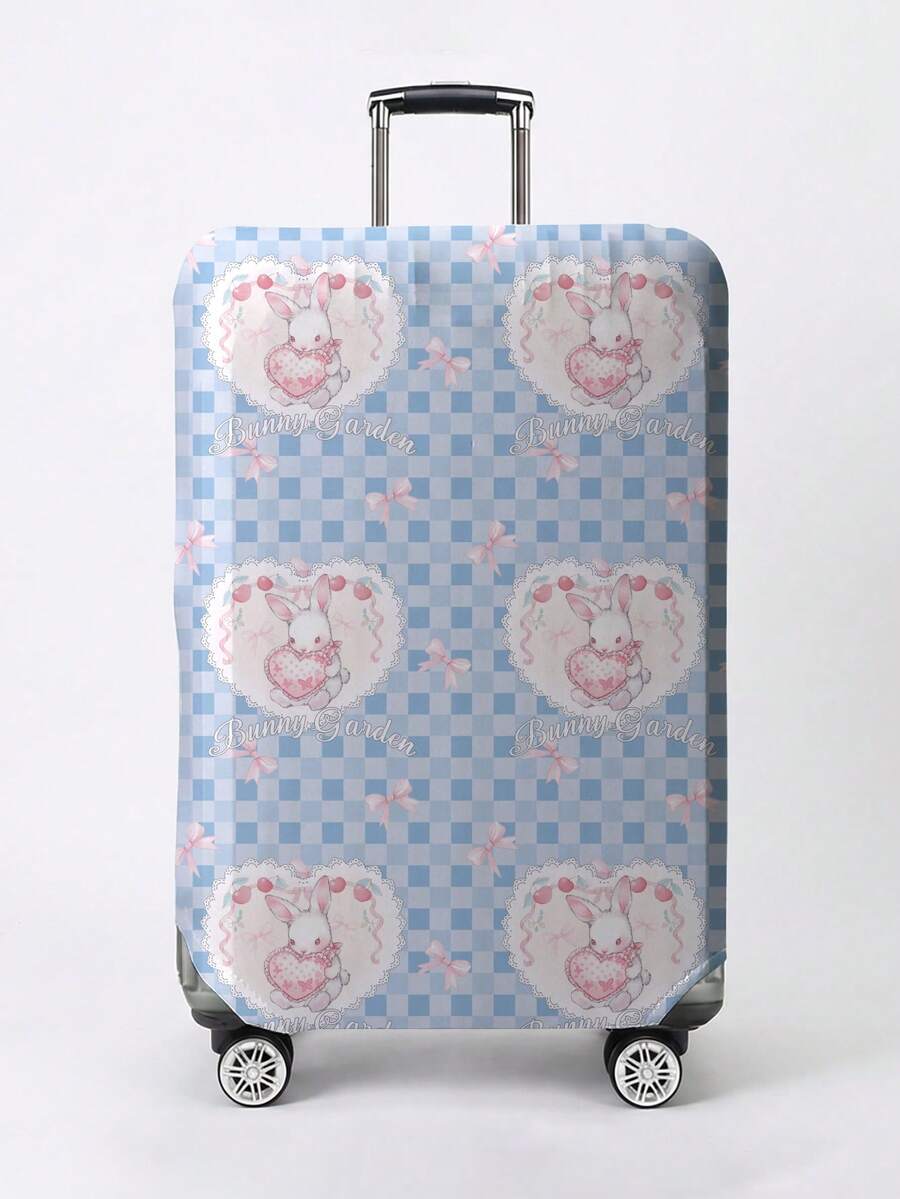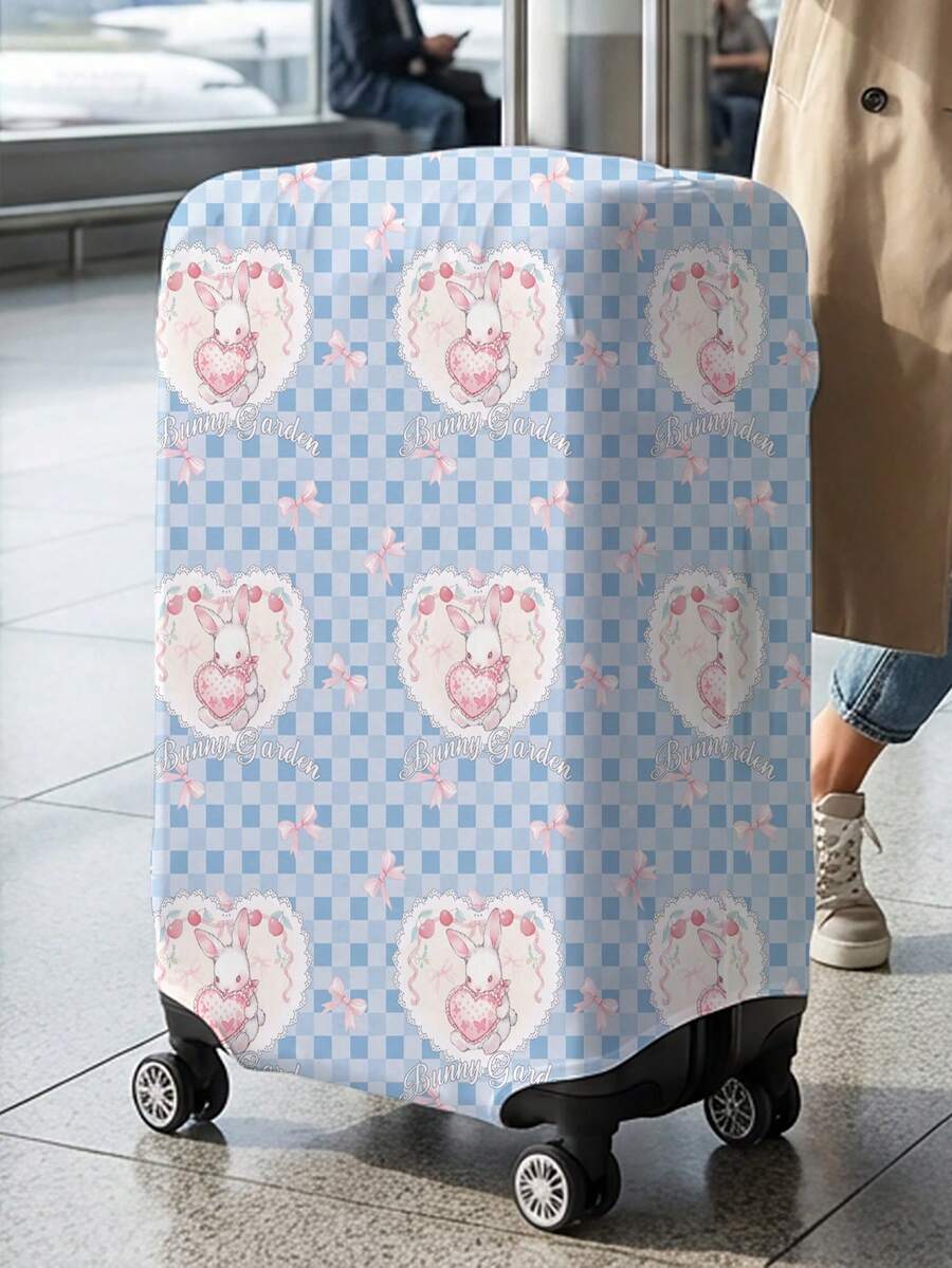 Kawaii Rabbit Love Blue Grid Pattern Luggage Protective Cover, Suitable For 18-32 Inch Luggage Covers, Luggage Handle Gloves, Travel Accessories