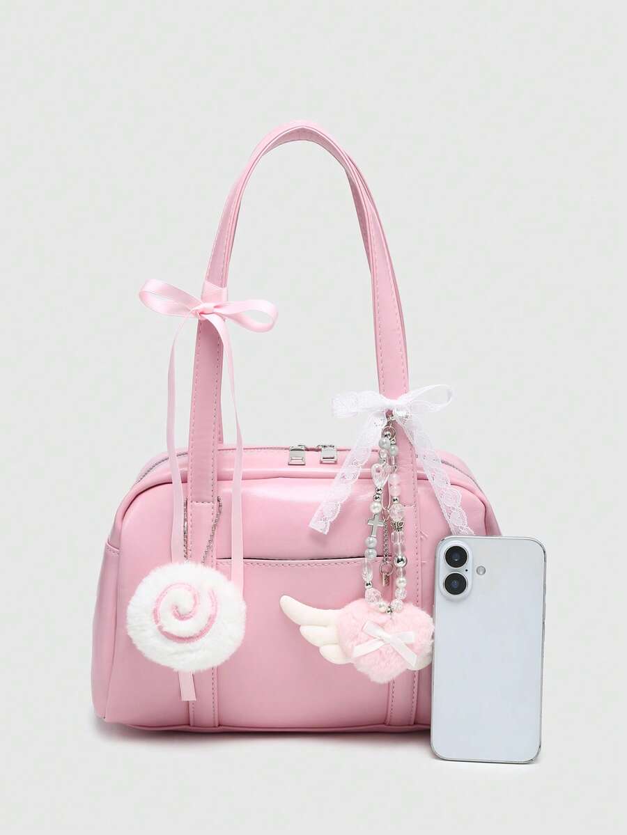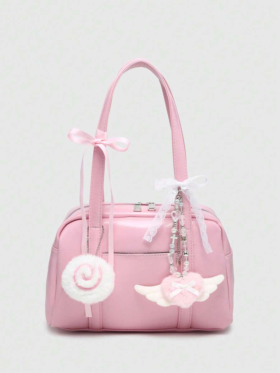 Kawaii Retro Cute Polka Dot Bowknot Decor Cherry Heart Shoulder Underarm Bag With Multiple Pockets For Women