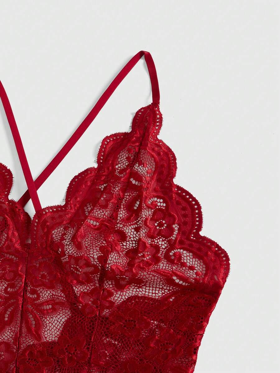 Kawaii Romantic Valentine's Day Sexy Lace V-Neck Ruffle Criss-Cross Adjustable Strap Bodysuit