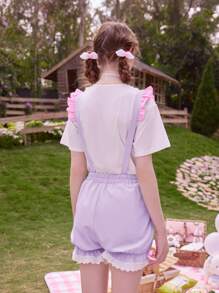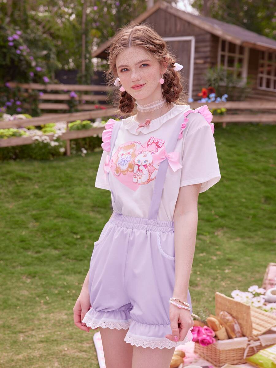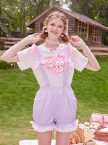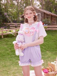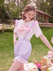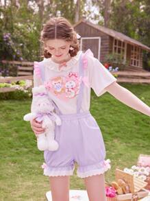 Kawaii Ruffle Trim Bow Detail Overall Shorts