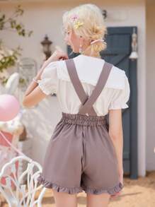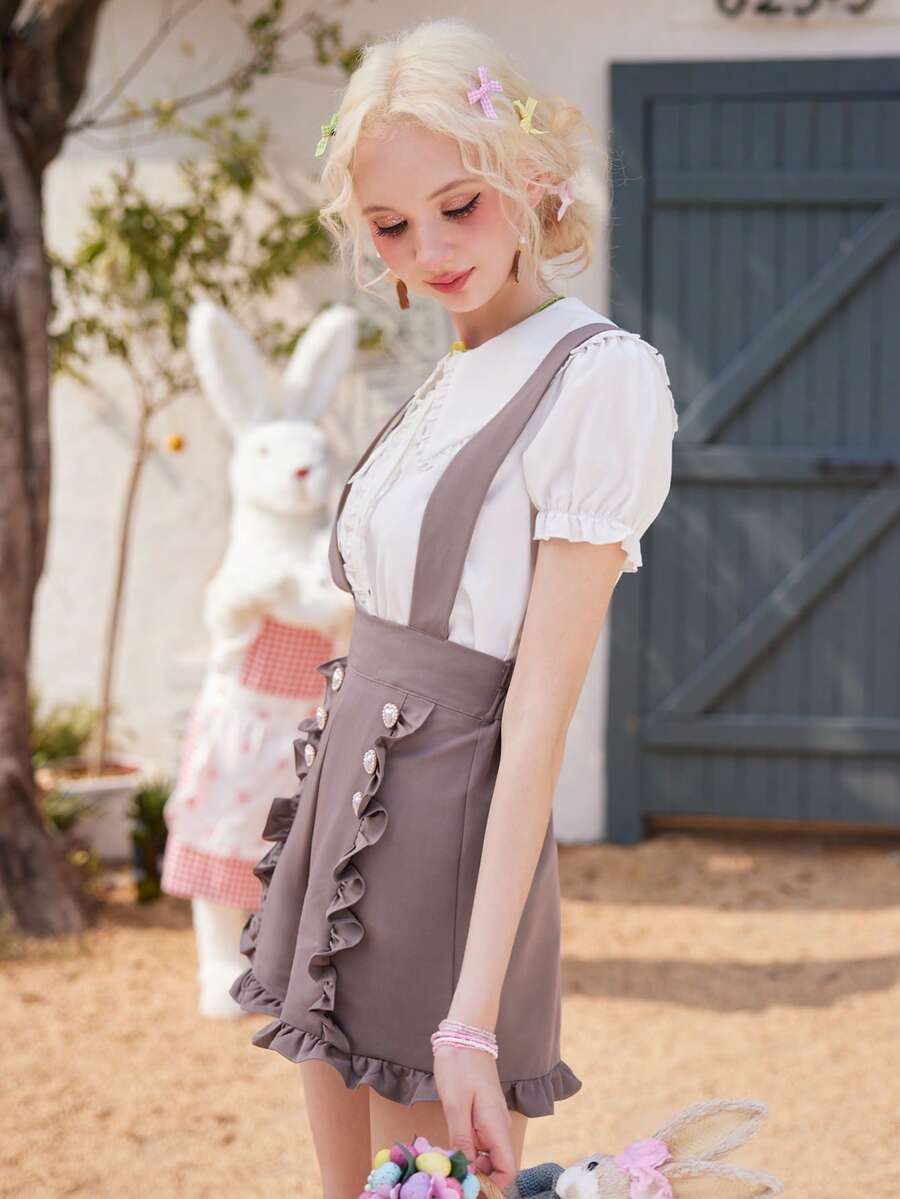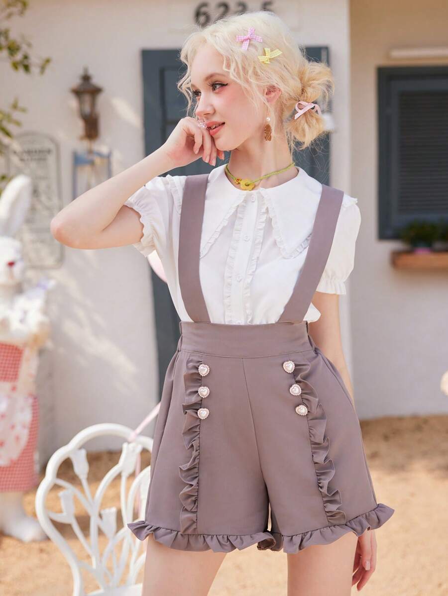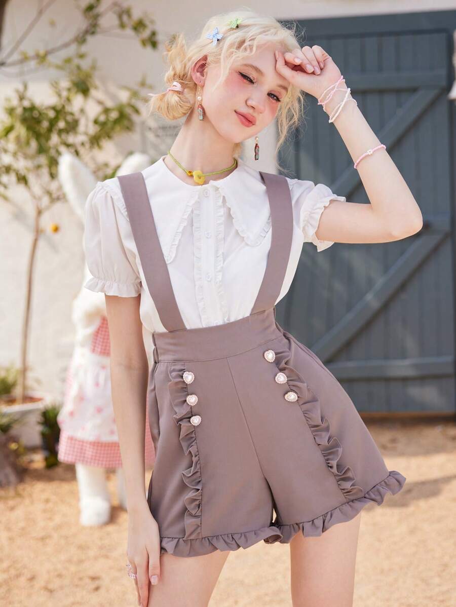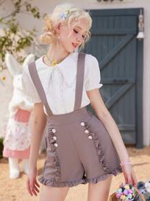 Kawaii Ruffle Trim Button Detail Pinafore Shorts