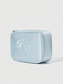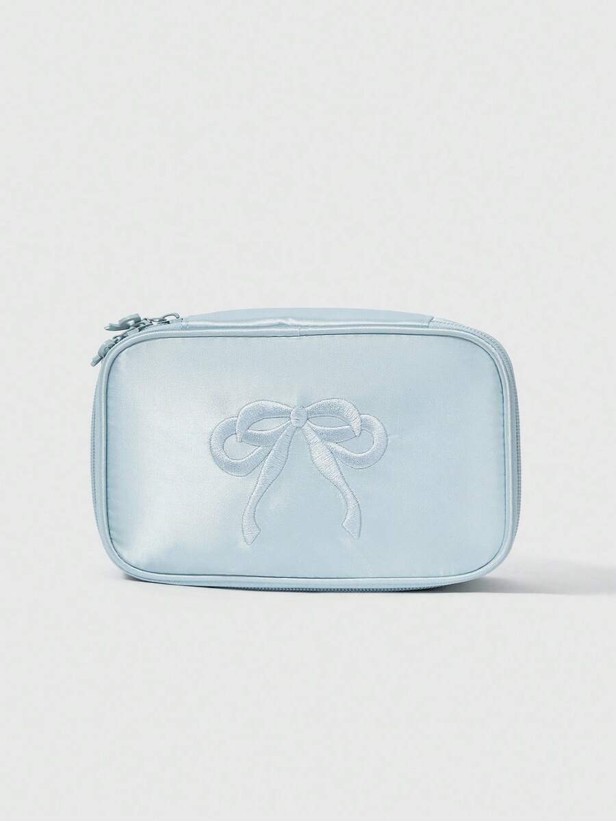 Kawaii Satin Fabric Cute Bow Embroidery Cosmetic Bag