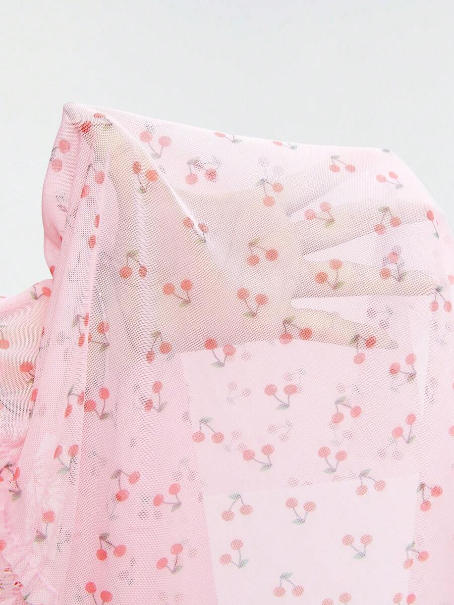 Kawaii Sexy And Asymmetric Cherry And Hollow Lace Bowknot Splicing Tempting Dress Set