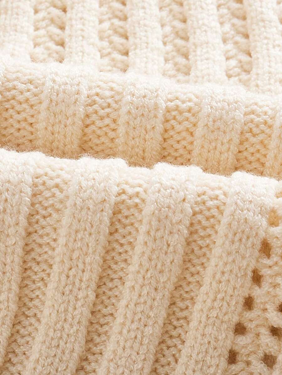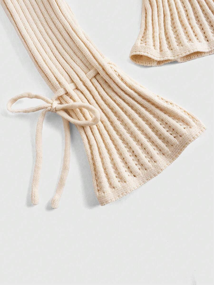 Kawaii Sexy Open Shoulder Elastic Tight-Fit Cream-White Sweater With Fold-Over Collar And Tie For Women